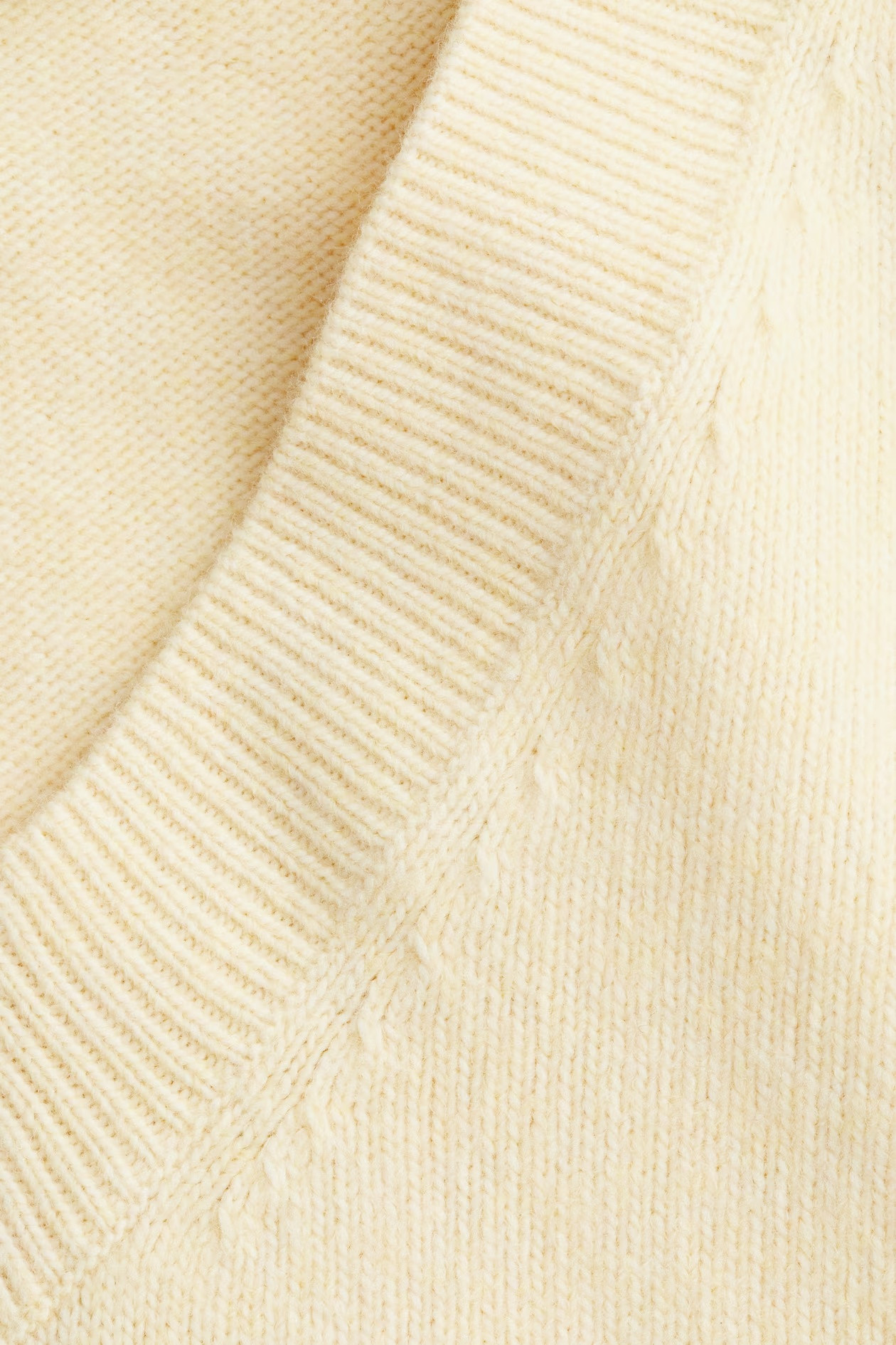 Oversized sweater made of soft knit. Featuring a V-neck, dropped shoulders, and long sleeves. Ribbed cuffs at the neckline, cuffs, and hem.