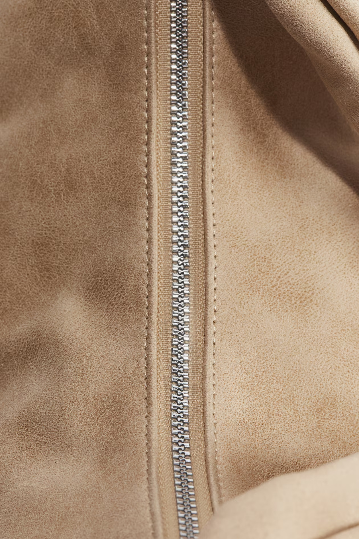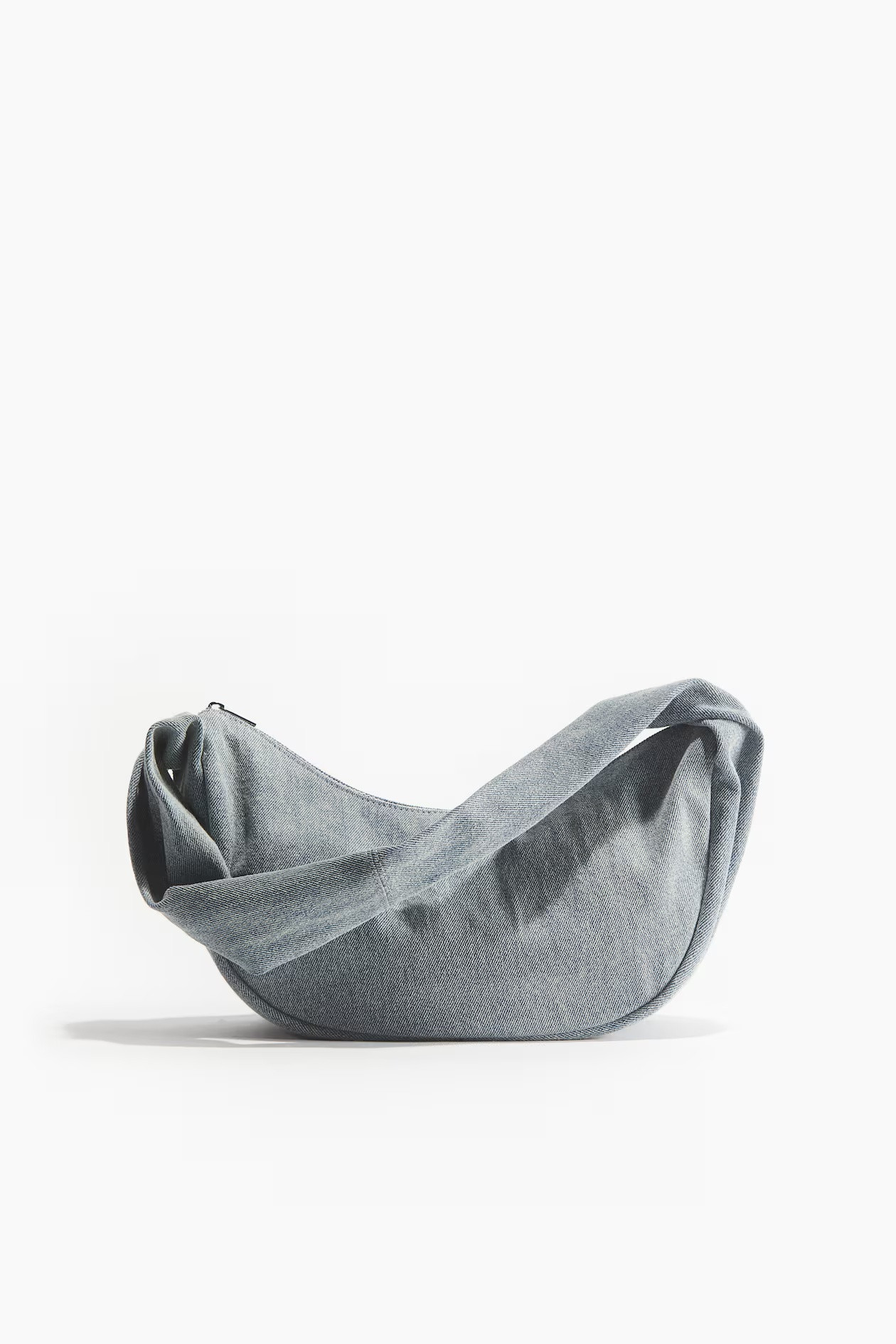 Small shoulder bag with a zip at the top and a wide shoulder strap. Taffeta lining. Height 14 cm. Width 29 cm.