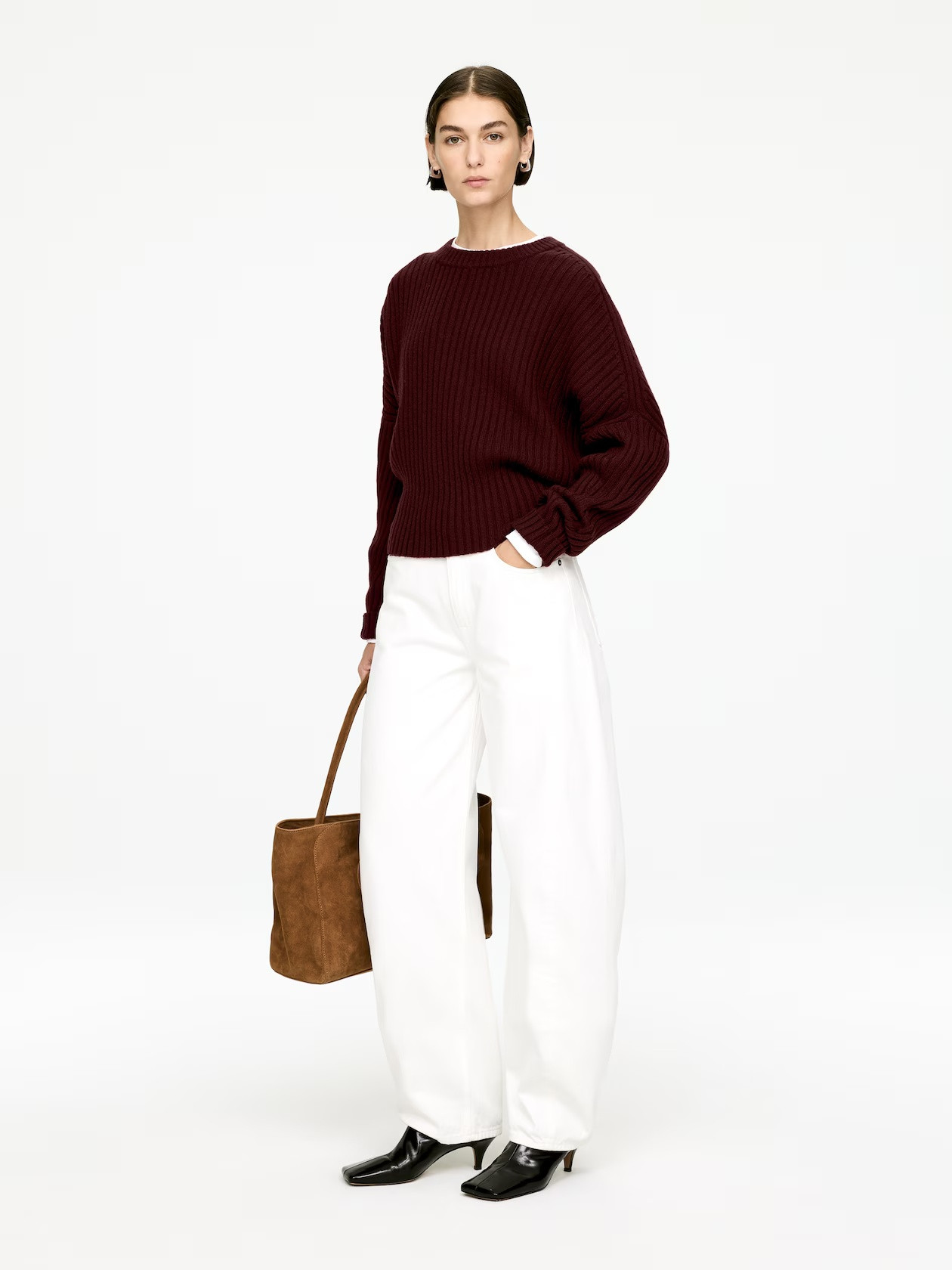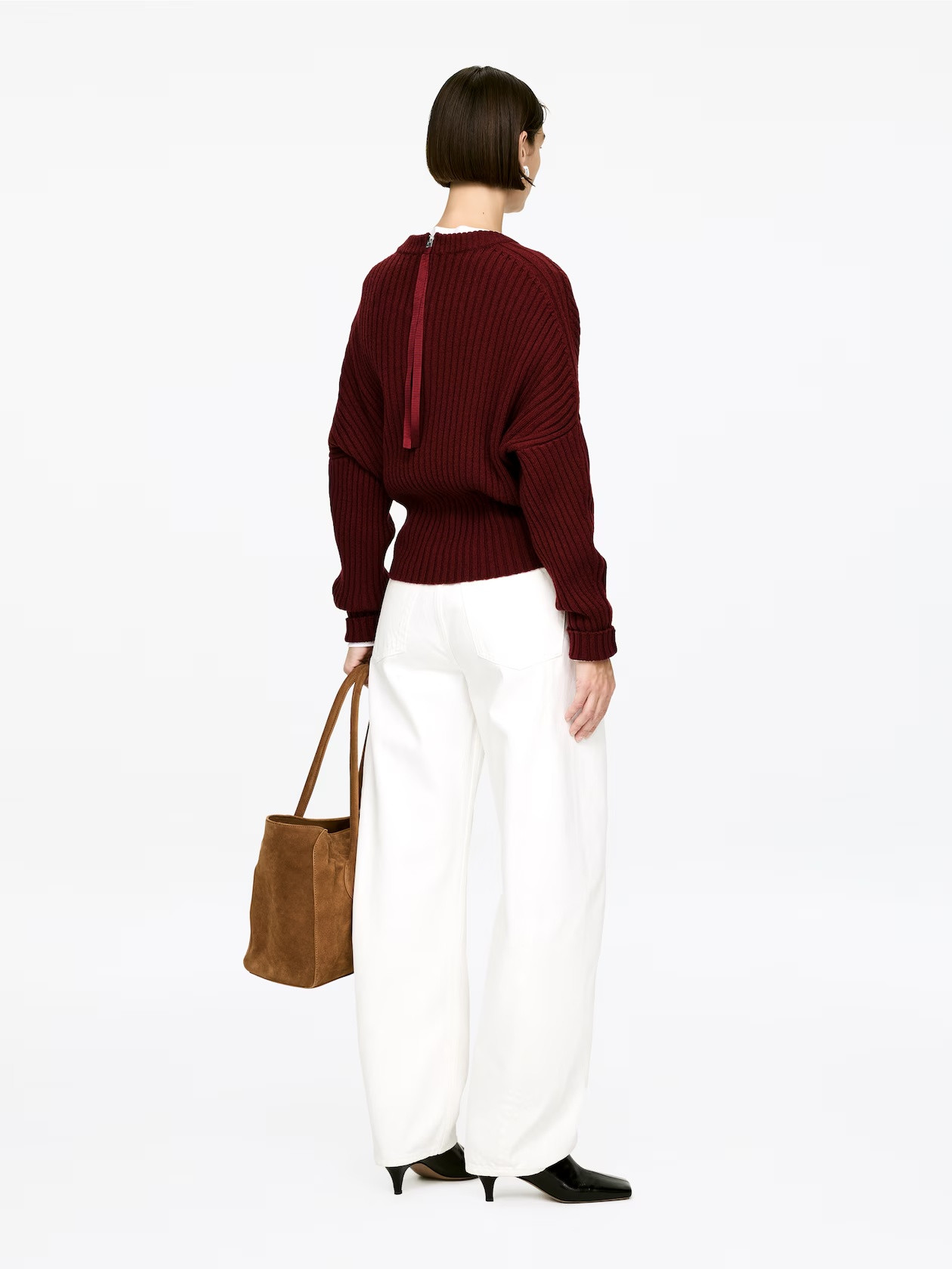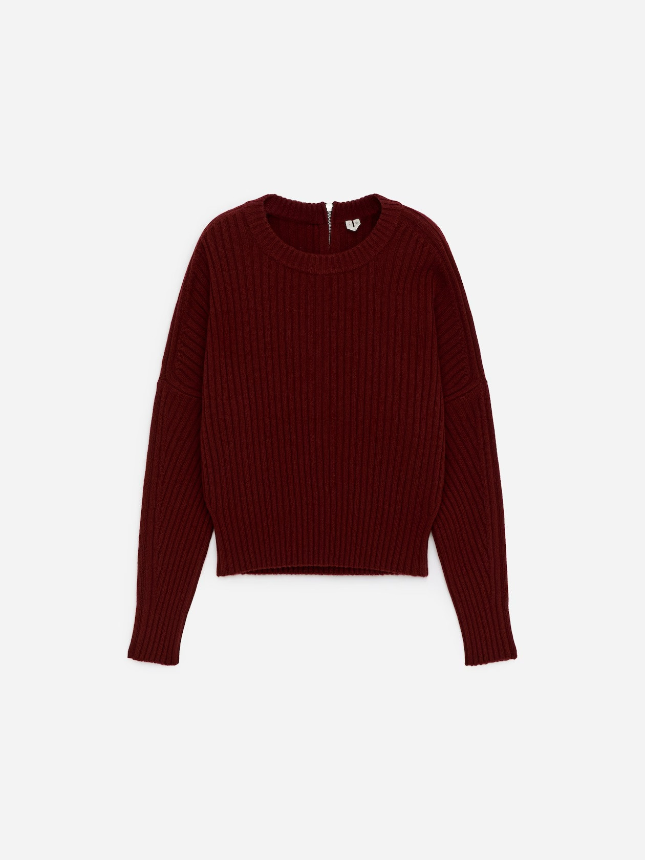 Pure wool sweater. Designed with an elegant crew neck and a discreet center back zip with a long pull tab. Regular fit. The outer fabric is made from 100% RWS-certified wool (TE-00047206). Products certified according to the Responsible Wool Standard (RWS) contain wool fibers from farms that are independently certified according to animal welfare and land management standards.