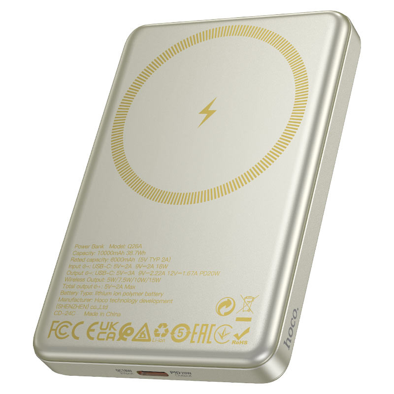 6. Indication: LED indicator of power level. Green indicator of PD / QC fast charging and wireless charging mode.