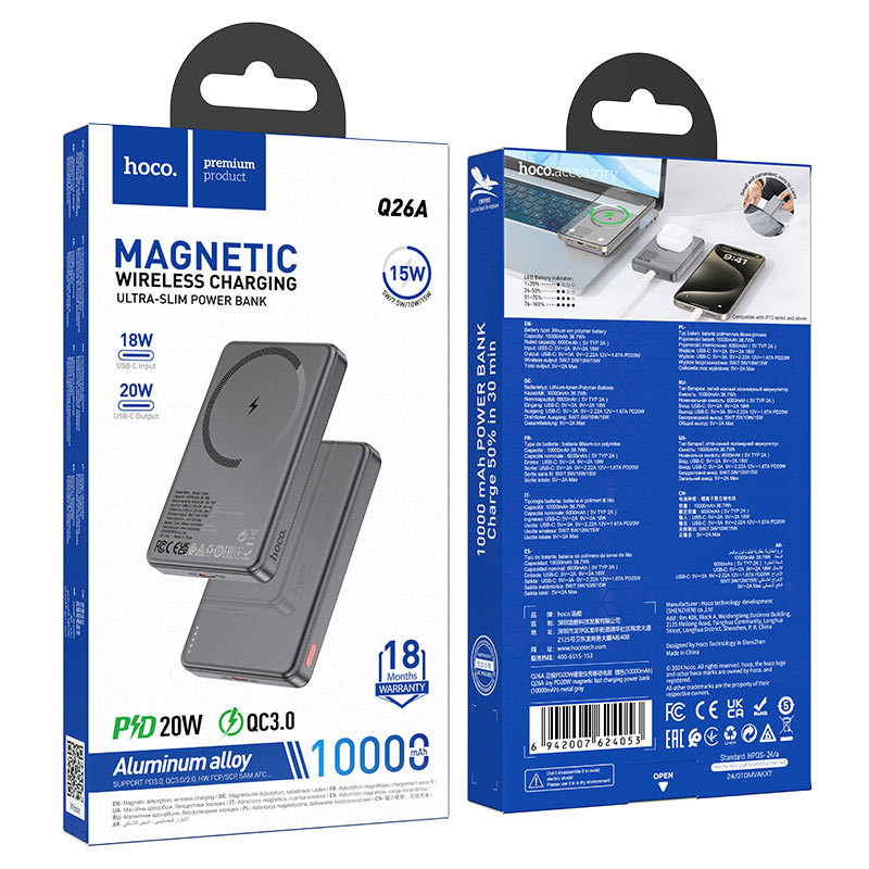 5. Material: aluminum alloy casing + high-efficiency polymer lithium battery cells.