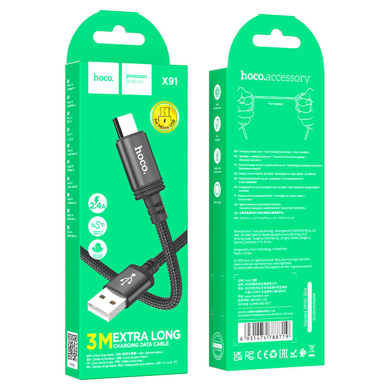 Hoco X91 Micro 3m 2.4A Charging Cable