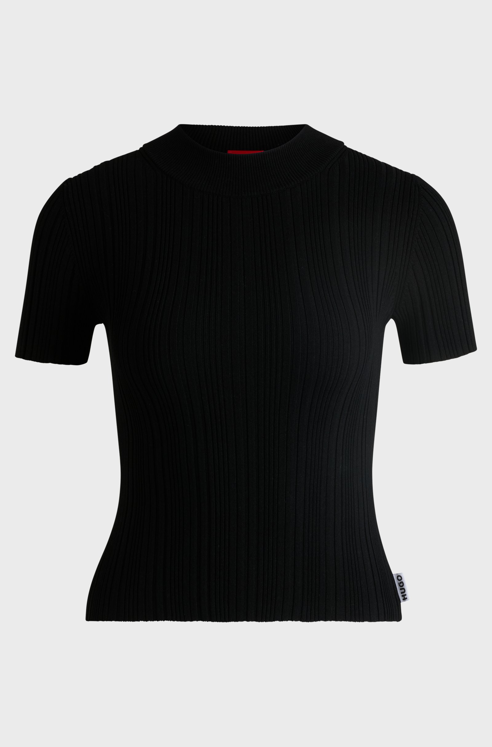 A short-sleeved sweater with a mock neckline by HUGO. This top is cut to a slim fit with an irregular ribbed structure. This product is made with cellulose fibres, derived from natural raw wood material and sourced from responsibly managed forests. We cooperate with external organisations to ensure respectful treatment of virgin and endangered forests.