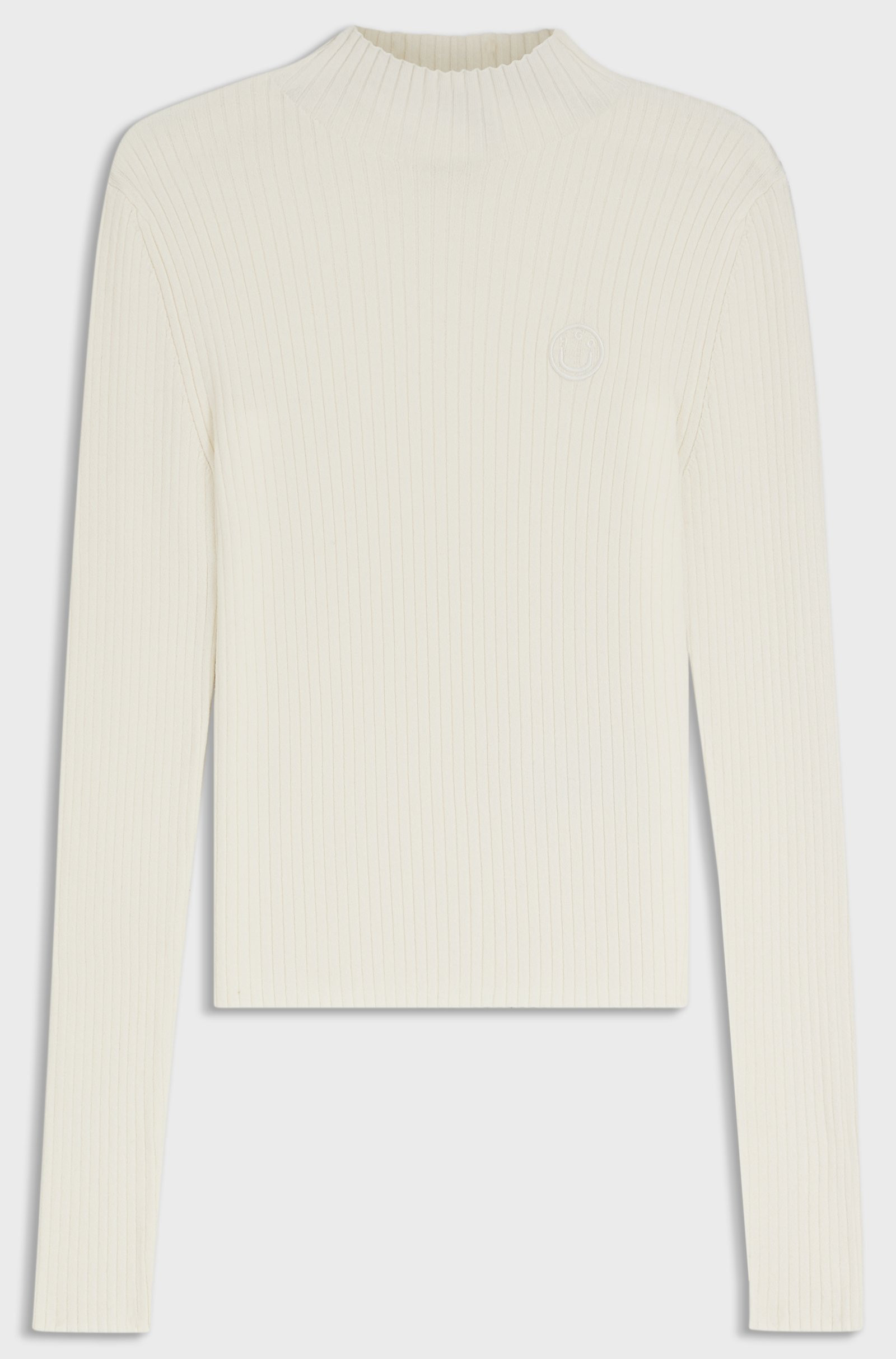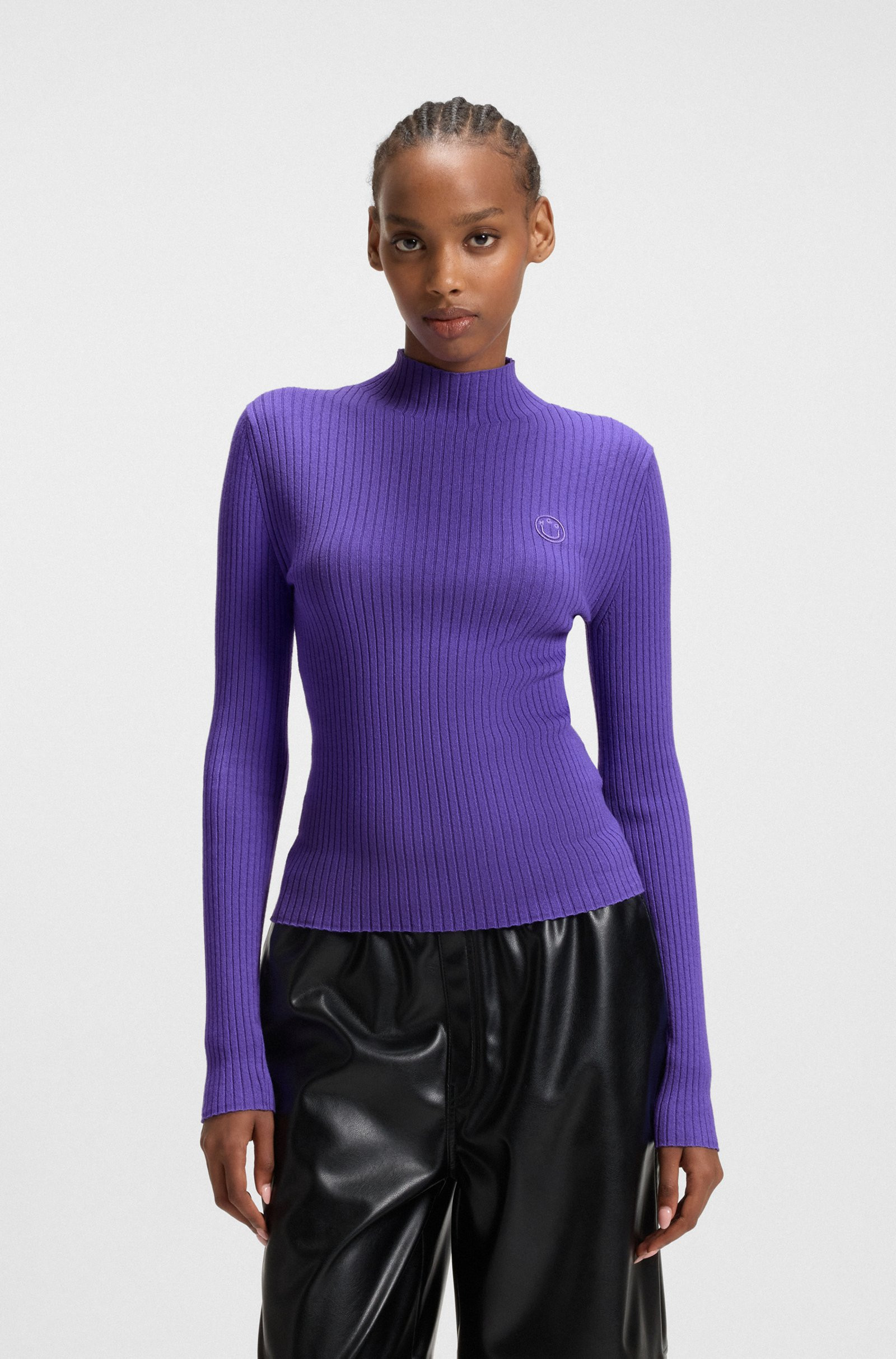 An essential with a twist, this ribbed-knit HUGO Womenswear sweater is embroidered with a Happy HUGO logo. Flattering slim fit. Mock neckline. This product is made with cellulose fibres, derived from natural raw wood material and sourced from responsibly managed forests. We cooperate with external organisations to ensure respectful treatment of virgin and endangered forests.