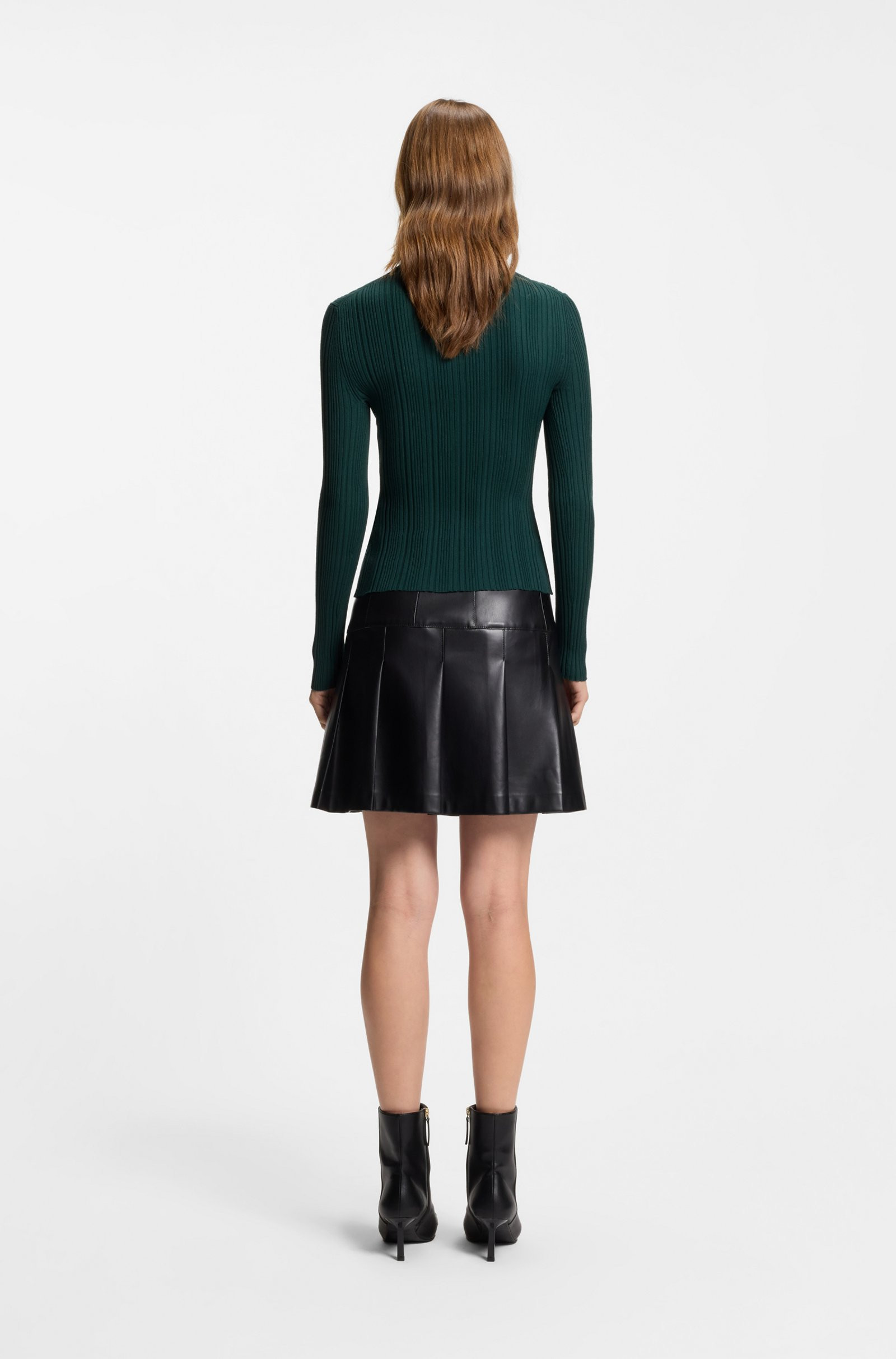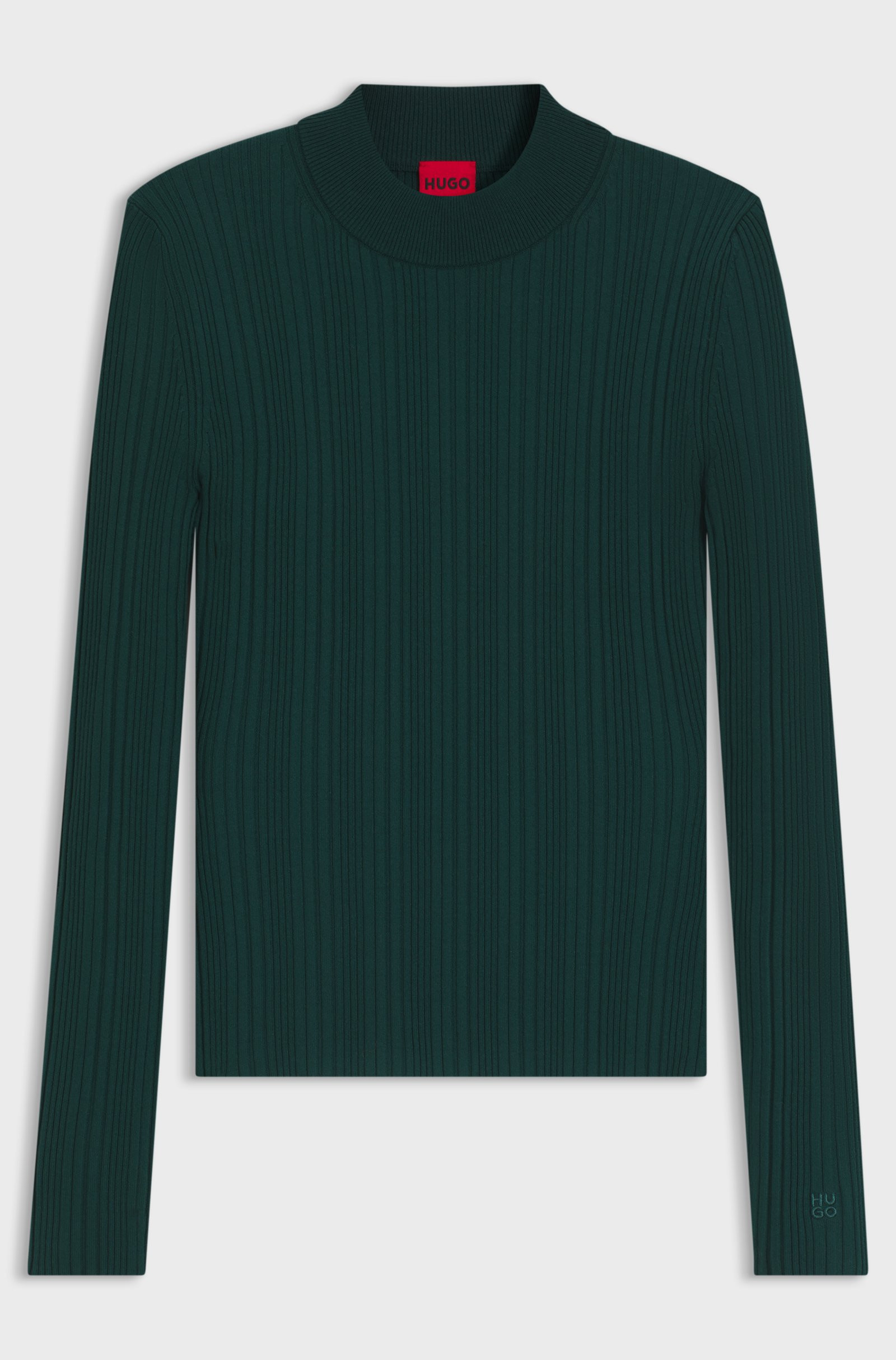 Create a variety of everyday looks with the close fit and irregular rib of this HUGO Womenswear sweater. Mock neck. Embroidered stacked logo.