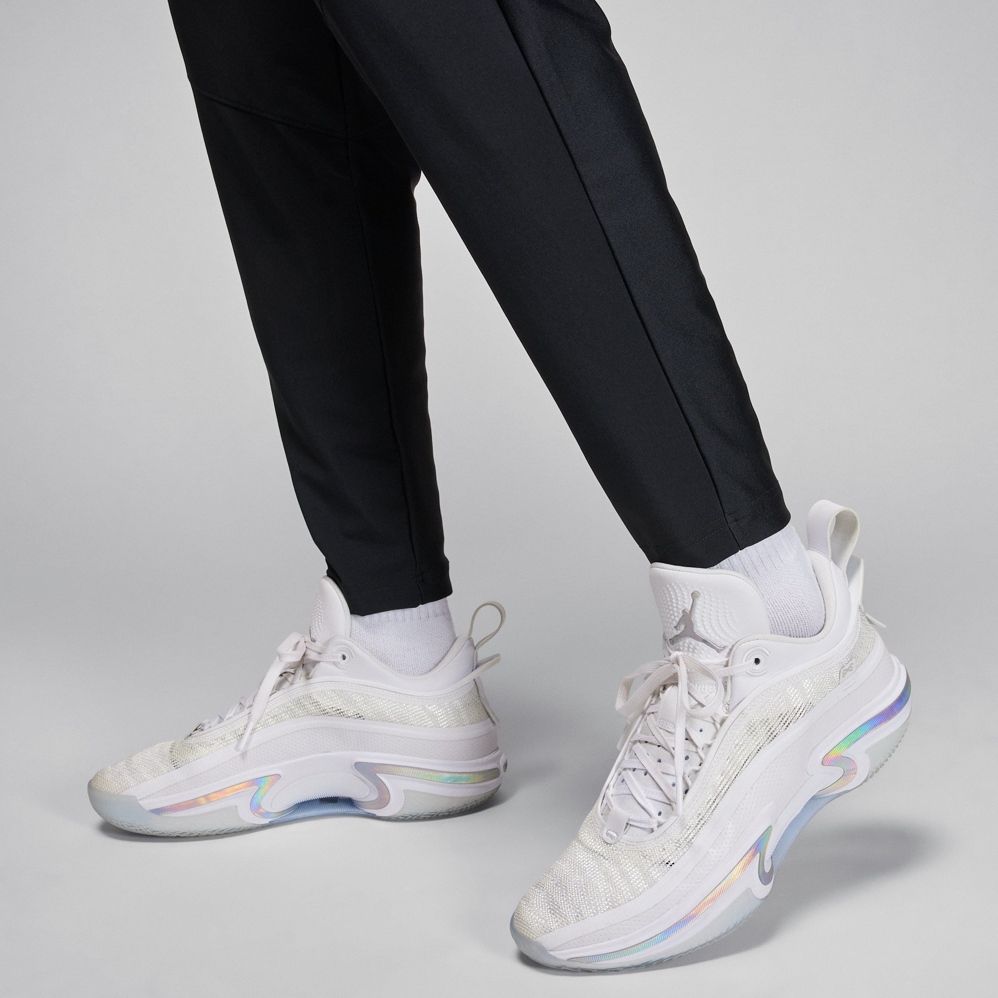 Warm up, cool down, and move with ease in the Jordan Sport Dri-FIT Woven Pants. Crafted from a flexible woven stretch fabric, these pants are designed for optimal comfort and performance. They feature strategically placed knit panels at the calves, enhancing your range of motion and making them incredibly easy to put on and take off after a long day or intense workout.