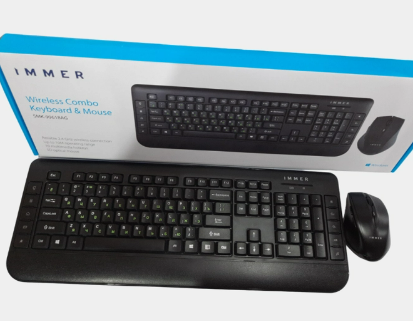 The IMMER SMK-99618ag is a modern and convenient wireless keyboard and mouse kit that is ideal for working with a computer in the office or at home.ction: wireless