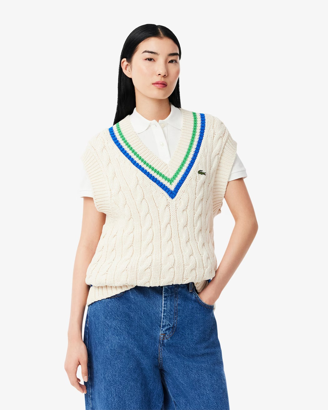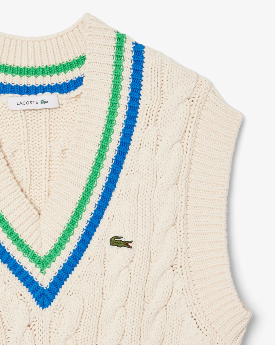 LACOSTE Sleeveless pullover with V-neck and cable knit pattern