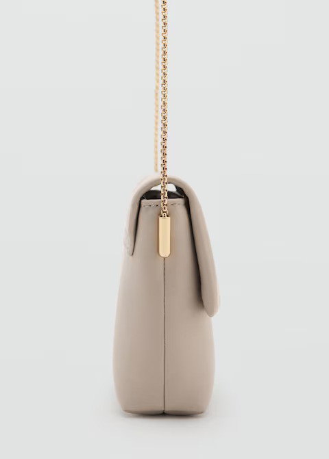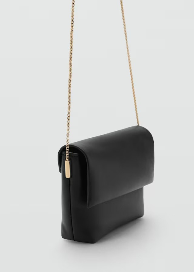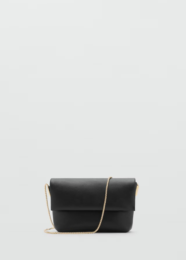 Pochette style. Leather effect. Shoulder strap. Flap closure with magnetic button.