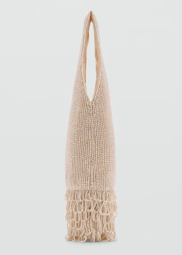 Add a touch of elegance to your style with this unique bag, featuring beads that create an elegant, eye-catching polka dot pattern. The beaded fringes add structure and movement, making this accessory both a fashion statement and a work of art. Ideal for adding a distinctive touch to any look. Small size. Handle. Beaded embroidery. Fringe embellishment at the hem. No closure. Lined interior. Capsule collection. Items from the capsule collection can be exchanged or returned within 14 days of the shipping date.