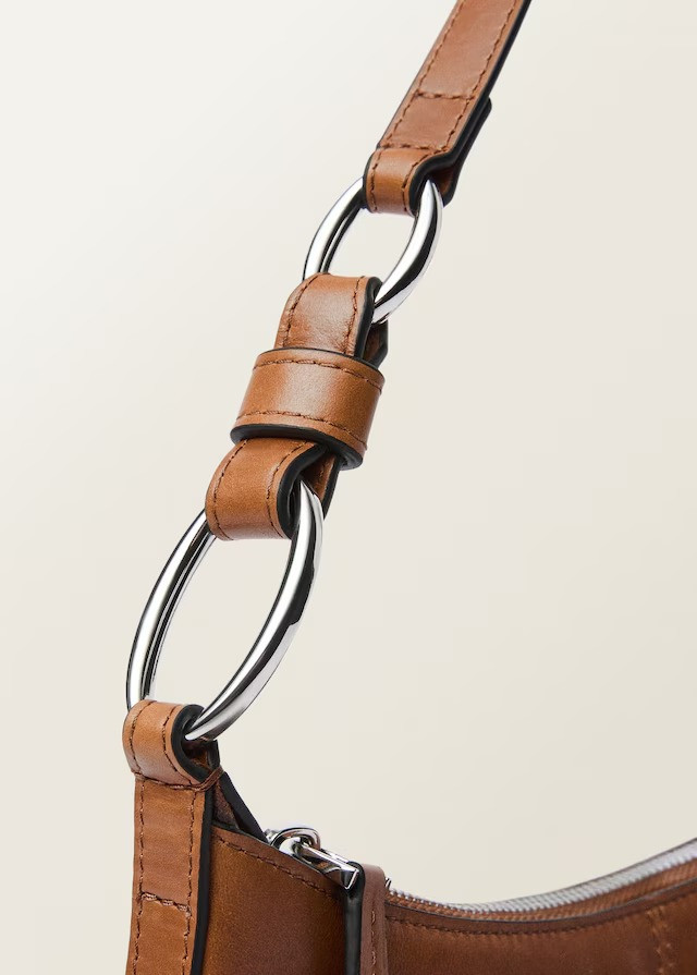 100% cowhide leather. Shoulder strap. Medium size. Two front patch pockets. Gathered pockets with adjustable closure. Leather tag detail. Zipper closure. Selection collection.