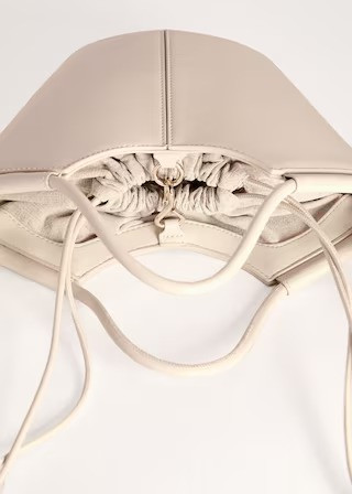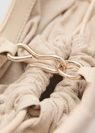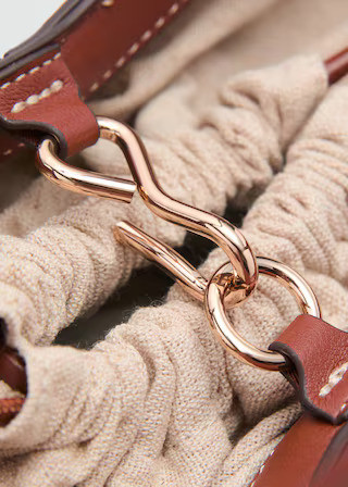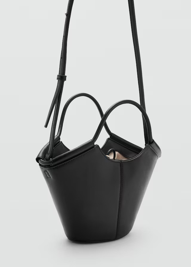 Small size. Shopper style. Decorative stitching. Shoulder strap. Two short handles. Hook closure. Adjustable closure.