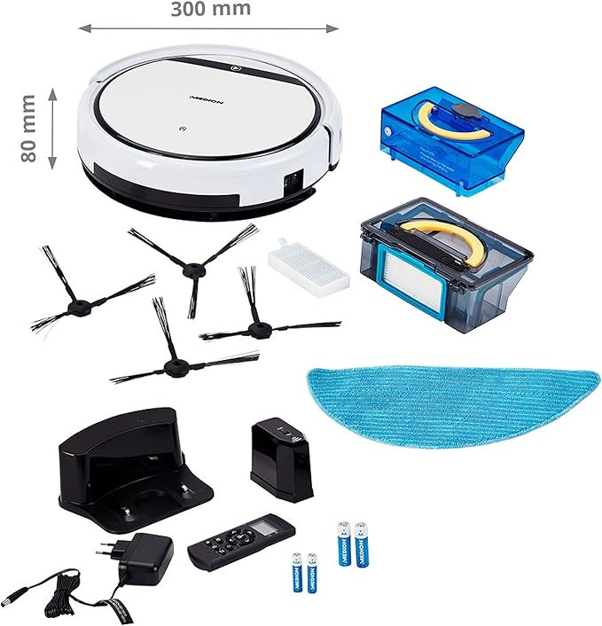 | Special Features | Start at the touch of a button or programming, Automatic and thorough cleaning thanks to powerful brushes and powerful motor, Automatic return to charging station, Operating time: up to 90 minutes, Additional wet cleaning with water tank and mop, Limitation of the cleaning surface using a virtual wall |