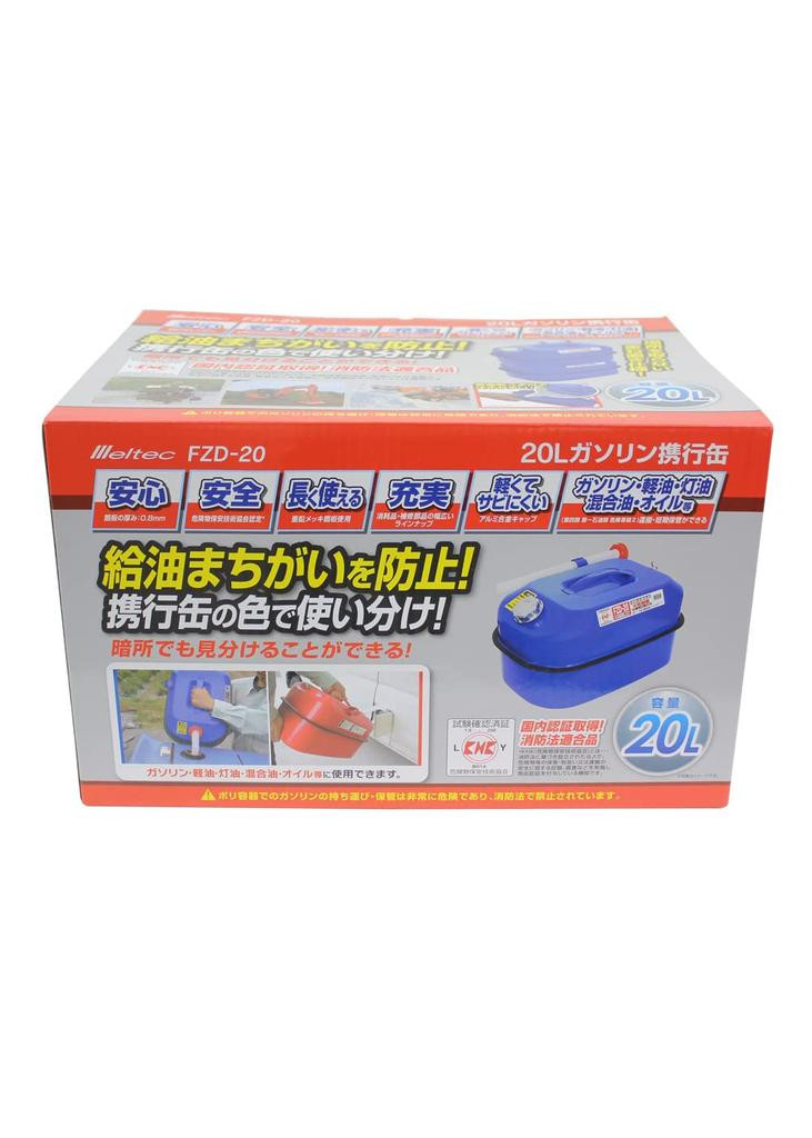 ●Body size: approx. 430(W) x 260(H) x 305(D)mm ●Weight: approx. 3.1kg (including nozzle) ●Accessories: cap, air adjustment screw, refueling nozzle, body molding ●Painting: powder coating ●Capacity: 20L ●Material: Galvanized steel plate (main body), die-cast aluminum (cap), PE (nozzle, tightening part) ●Color: Blue Package weight: 3.56 kg Style: 6) Gasoline Can 20L FZD-20 Blue