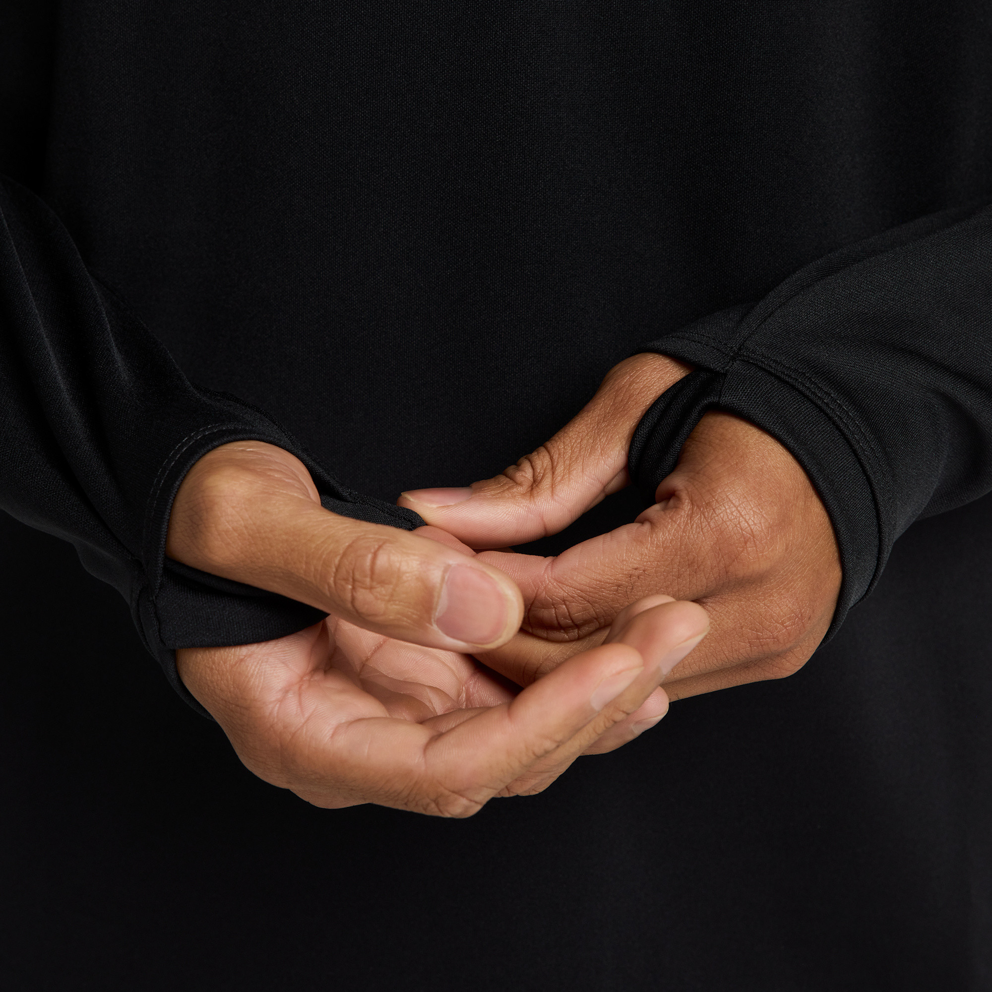 Featuring advanced Dri-FIT technology, this top actively wicks away sweat, keeping you dry and focused. Its streamlined, slim-fit design, combined with a practical quarter-zip, allows for unrestricted movement and effortless temperature regulation. Elevate your game during every drill and scrimmage, maintaining optimal pace and comfort without any distractions.