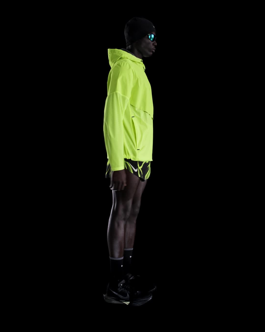 Set the pace on any run, in any season, with the Nike AeroSwift Storm-FIT Aerogami Running Jacket. Engineered specifically for runners, this advanced jacket is built to conquer diverse weather conditions, offering both waterproof and windproof protection. Its innovative Aerogami technology is a game-changer, designed to react in real-time to body sweat, providing optimal airflow and ventilation precisely when you need it most. This ensures you stay comfortable and focused, allowing you to push your limits without distraction.