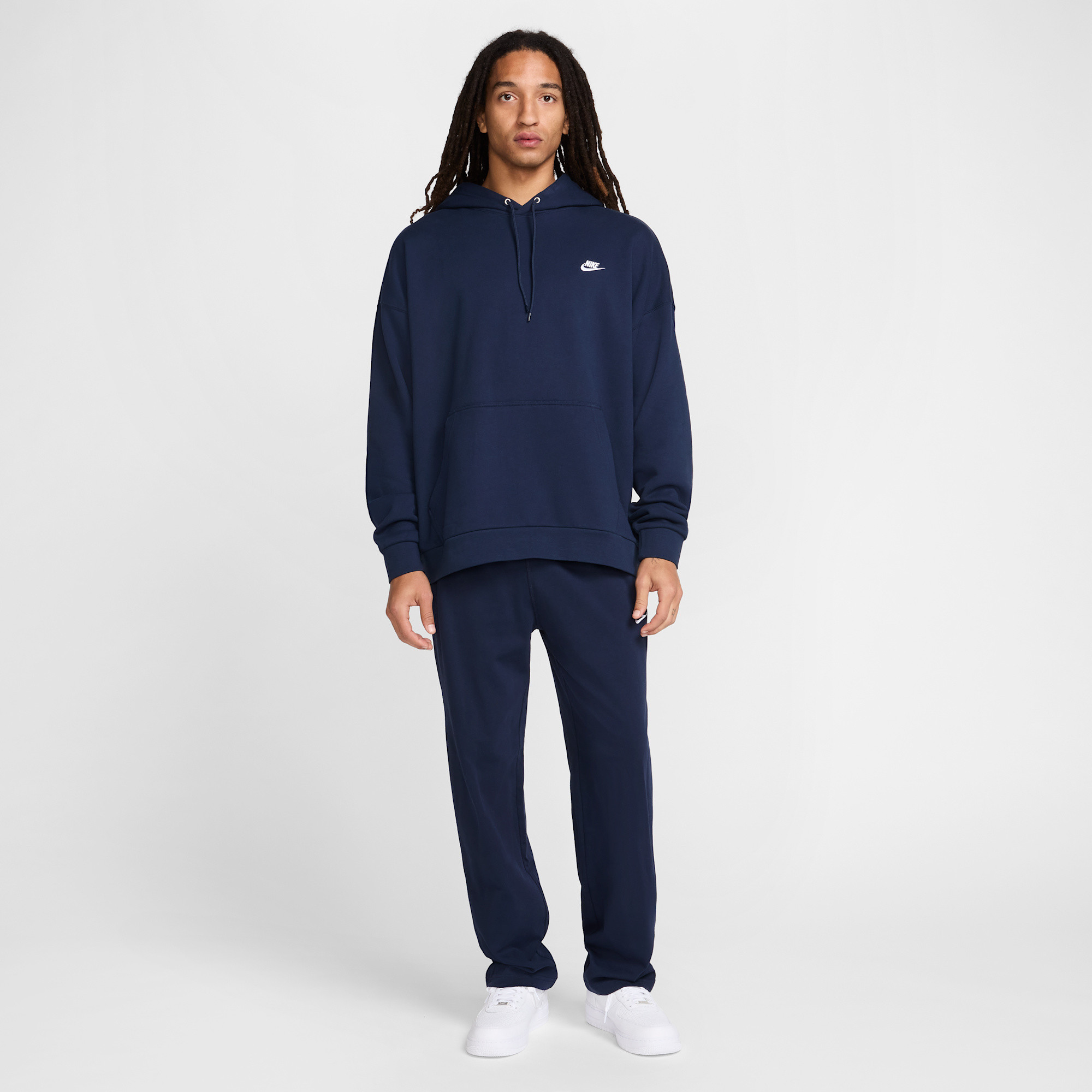 Experience supreme comfort and relaxed style with the Nike Club Fleece French-Terry Hoodie. This generously cut hoodie is designed for ultimate ease, making it a perfect addition to your everyday wardrobe. It's crafted from a premium midweight loopback fabric, which is engineered to be smooth on the outside while offering a wonderfully soft and cozy feel against your skin on the inside. This unique construction ensures a comfortable yet breathable experience, ideal for various activities or simply lounging. Whether you're heading out for a casual day or unwinding at home, this hoodie provides reliable warmth without sacrificing airflow.