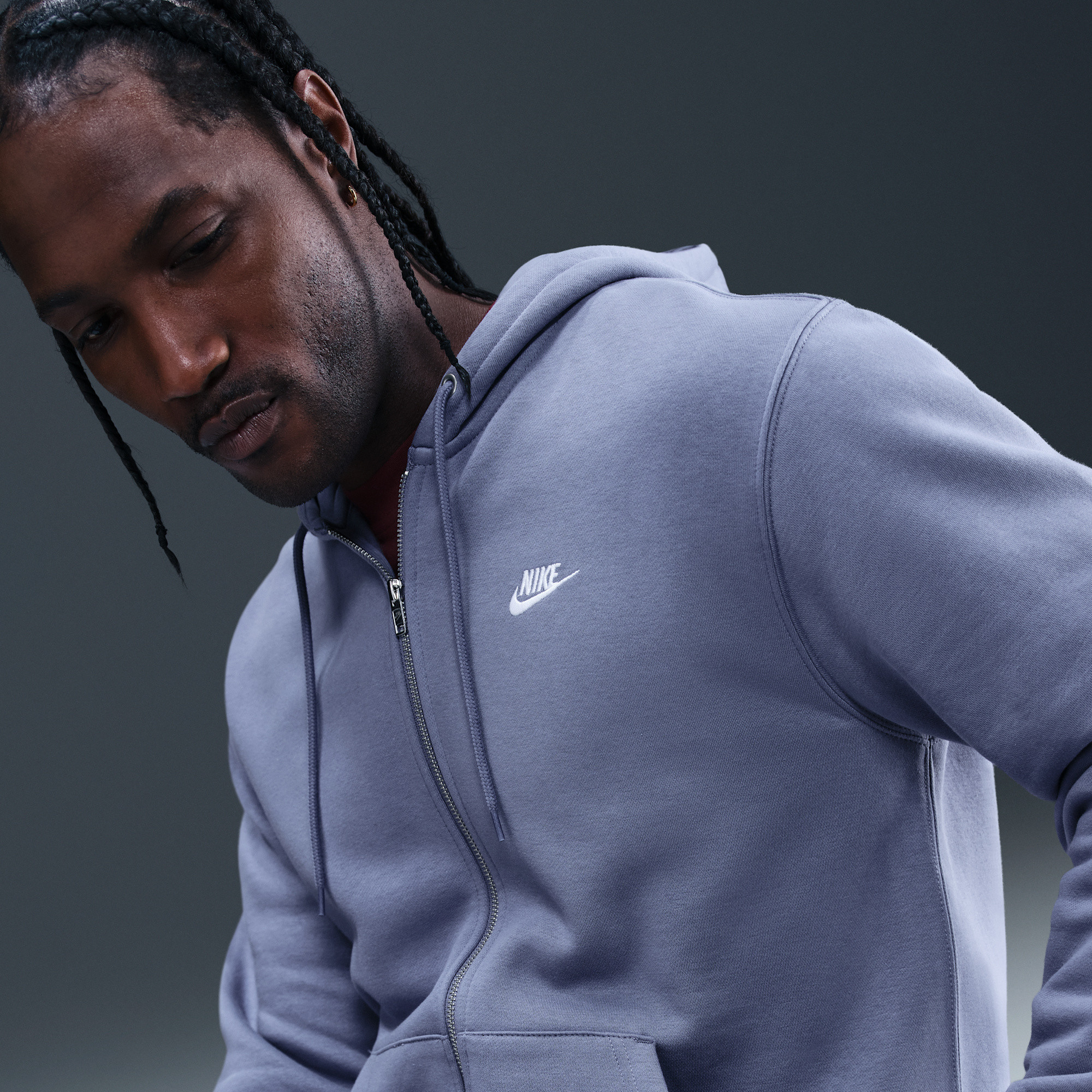 Embrace effortless style and ultimate comfort with the Nike Club Full-Zip Fleece Hoodie. This classic piece is designed for a clean, casual look that seamlessly integrates into your everyday wardrobe. Crafted from premium brushed fleece, it offers a smooth exterior while providing an incredibly soft, cozy feel against your skin on the inside.