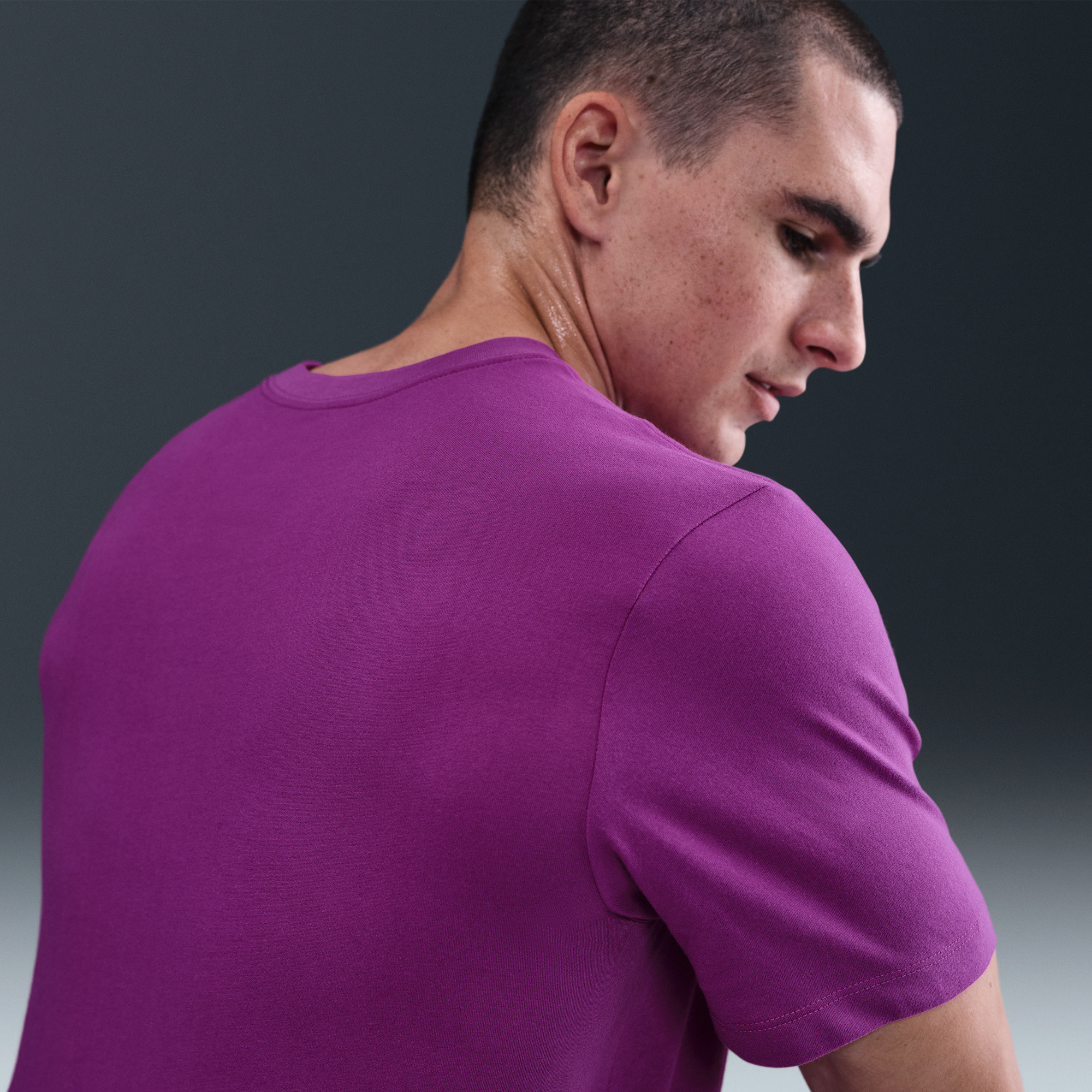 The Nike Dri-FIT T-Shirt is engineered to provide exceptional comfort and performance during your most intense workouts. Crafted from a soft, lightweight fabric, it offers a premium feel against your skin while ensuring unrestricted movement for any exercise. Its advanced Dri-FIT technology actively wicks sweat away from your body, promoting rapid evaporation to keep you dry and comfortable from start to finish. This essential fitness top is designed to help you stay focused and perform at your best, whether you're hitting the gym, going for a run, or engaging in high-intensity training. Experience the perfect blend of functionality and comfort with this versatile athletic staple.