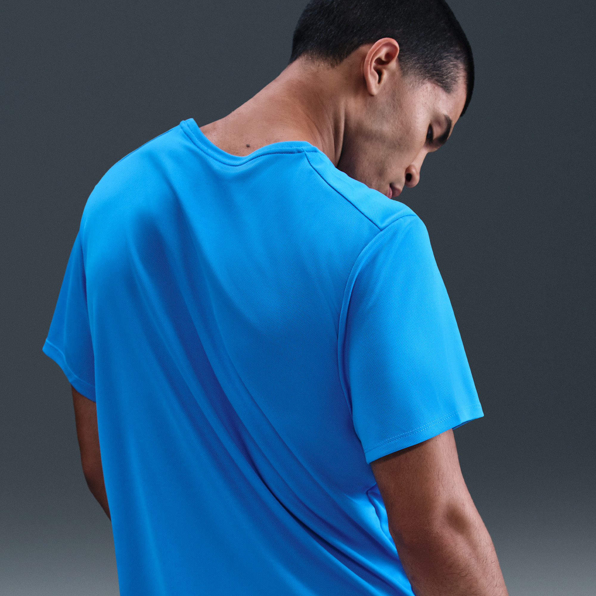 Push your limits and run further with a top engineered to withstand the rigors of your most demanding workouts. The Nike Dri-FIT UV Short-Sleeve Running Top, part of our renowned Miler series, features an updated design with an extended body and ultra-lightweight fabric. This thoughtful construction ensures enhanced coverage and protection without adding any unnecessary bulk, allowing for unrestricted movement.