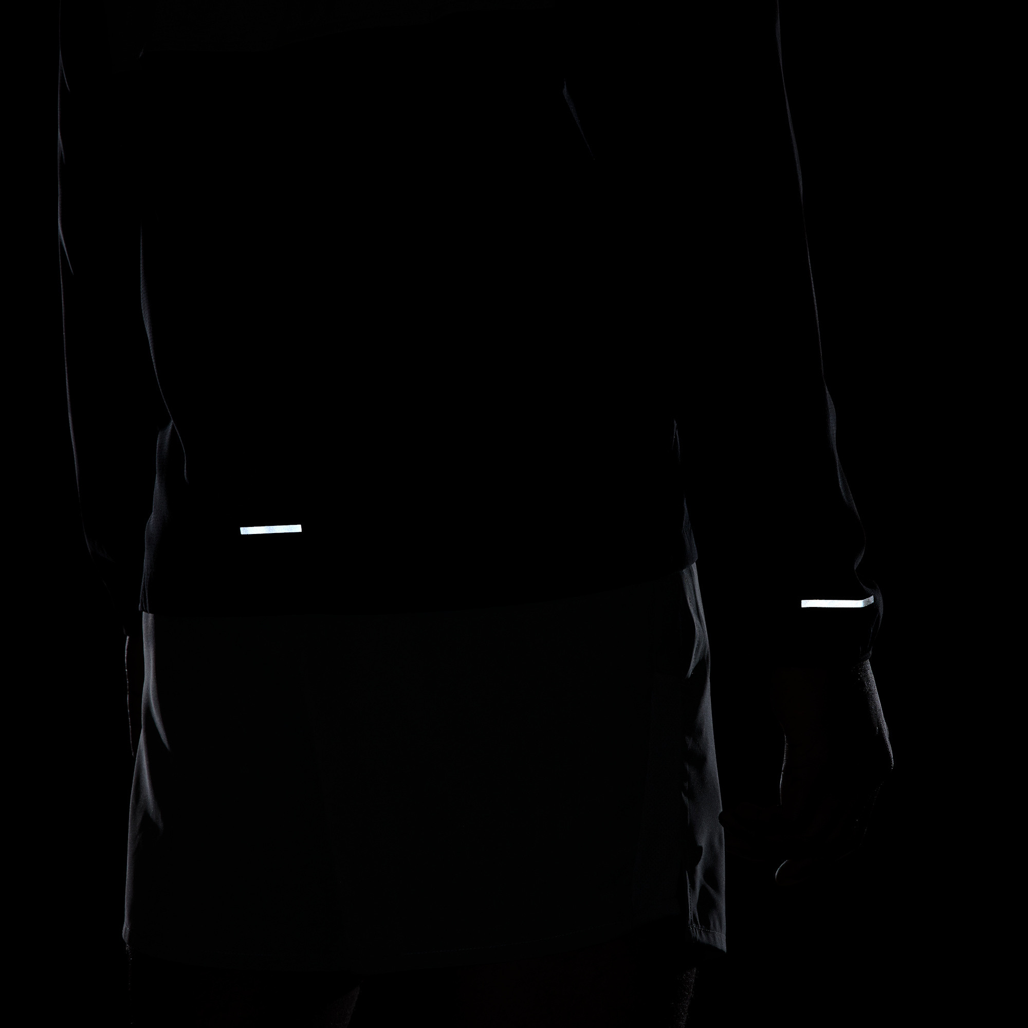 This super-lightweight running jacket offers essential protection against the elements. Its water-repellent finish helps shield you from light rain, while the integrated UV protection in the fabric works to keep sun rays away from areas covered by the jacket. Perfect for unpredictable weather, it's an indispensable addition to any runner's gear.