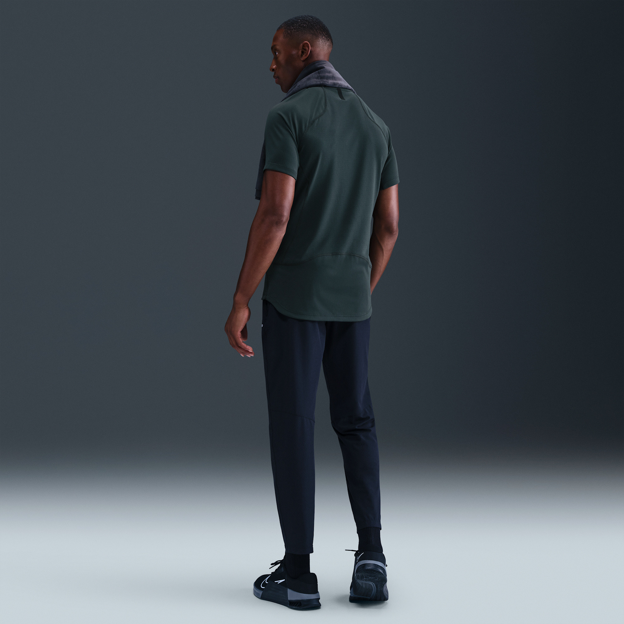 Engineered for peak performance, this Nike Pro top features advanced sweat-wicking Dri-FIT technology, keeping you dry and comfortable through your most intense training sessions. Crafted from a smooth, breathable fabric, it ensures optimal airflow and a soft feel against your skin. The design incorporates a rounded hem, providing extended coverage and protection, allowing you to move with confidence during dynamic workouts. This versatile short-sleeve shirt is an essential addition to any athlete's gear, offering both functionality and a professional aesthetic.