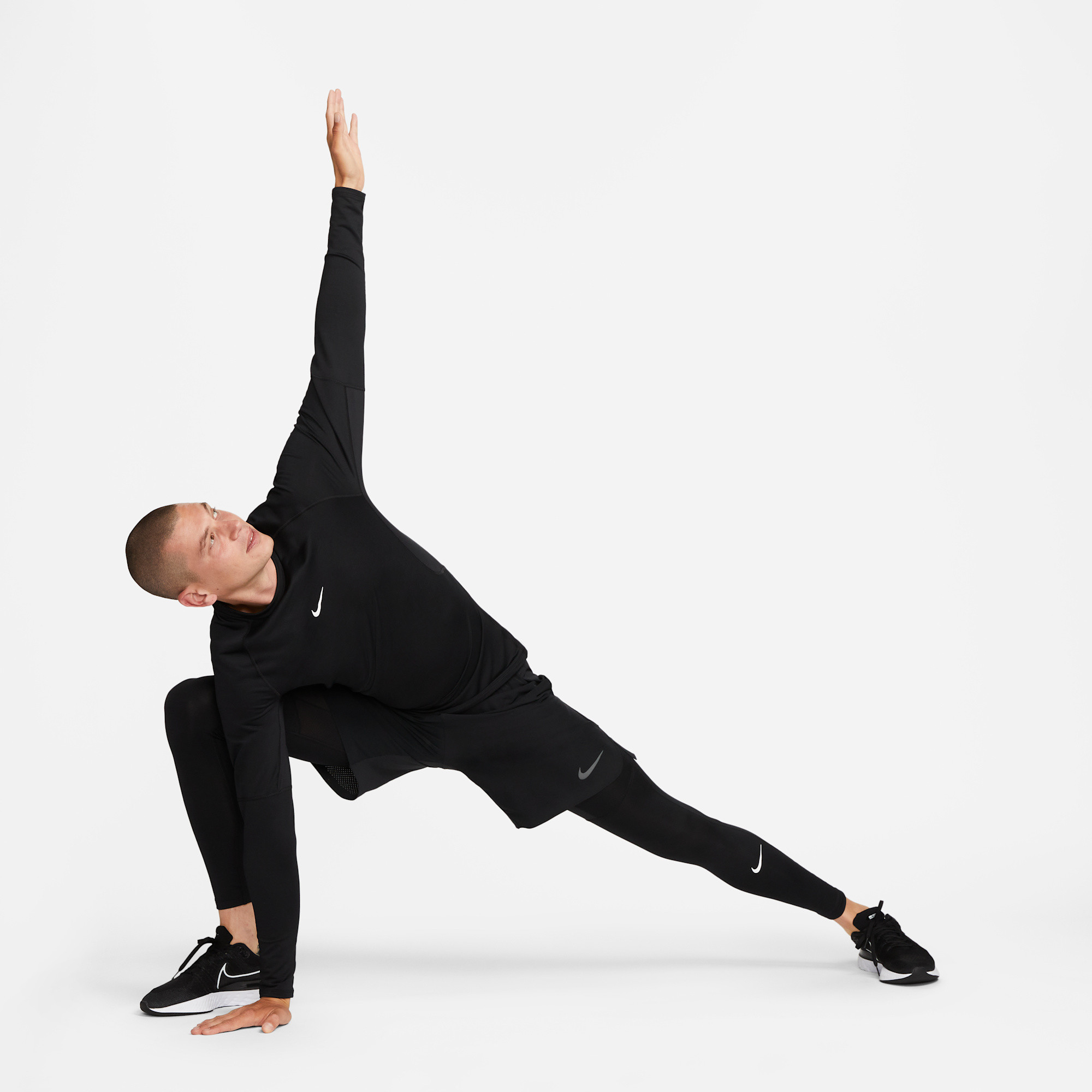 Don't let cold weather deter your workout with the Nike Pro Warm collection. This men's long-sleeve crew-neck top is crafted from soft, stretchy French terry fabric and features breathable panels, ensuring comfort during your favorite sports and activities. Nike Dri-FIT technology wicks sweat away from your skin for quicker evaporation, keeping you dry and comfortable. A rounded hem provides secure coverage whether you tuck it in or wear it out.