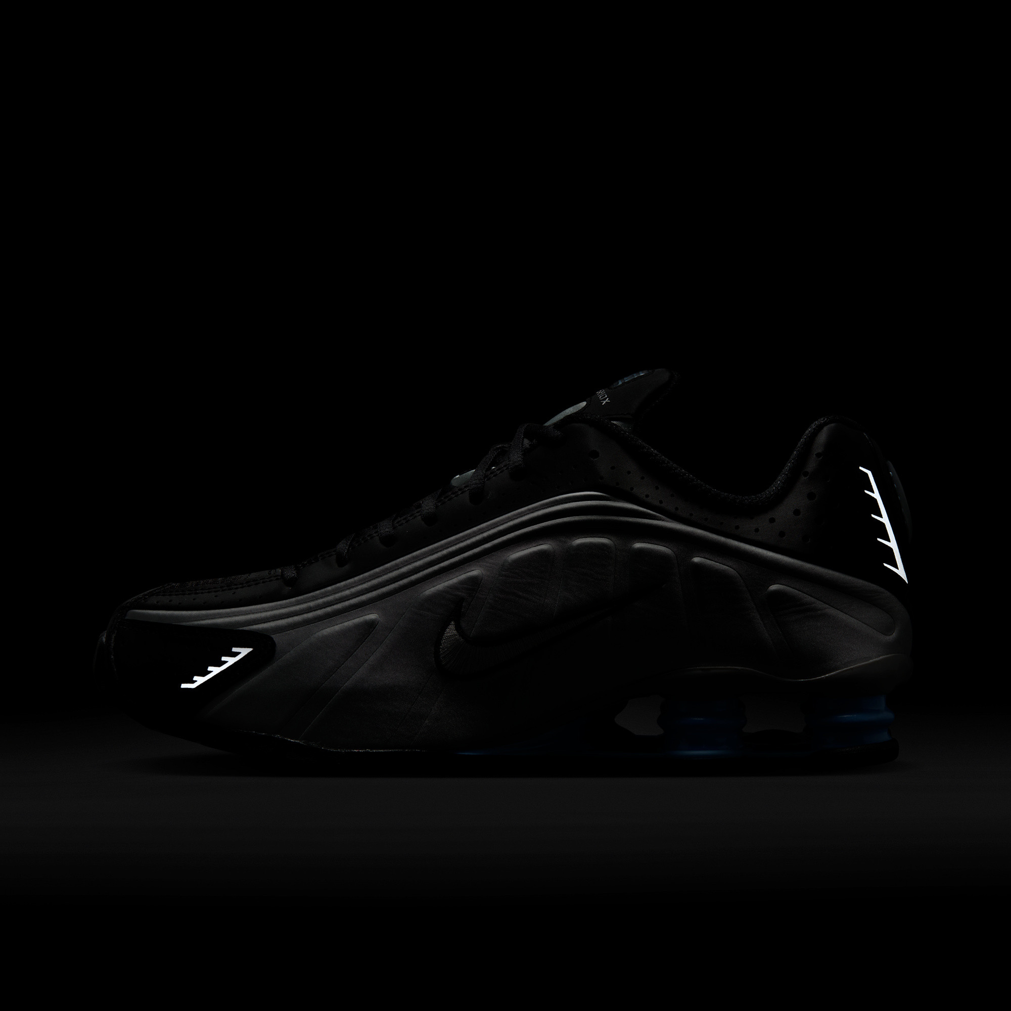 The Nike Shox R4 is a revamped version of the early 2000s classic, replicating the original with futuristic design lines and high-performance cushioning. Nike Shox columns in the heel distribute weight to maximize comfort and provide a striking look on the street.