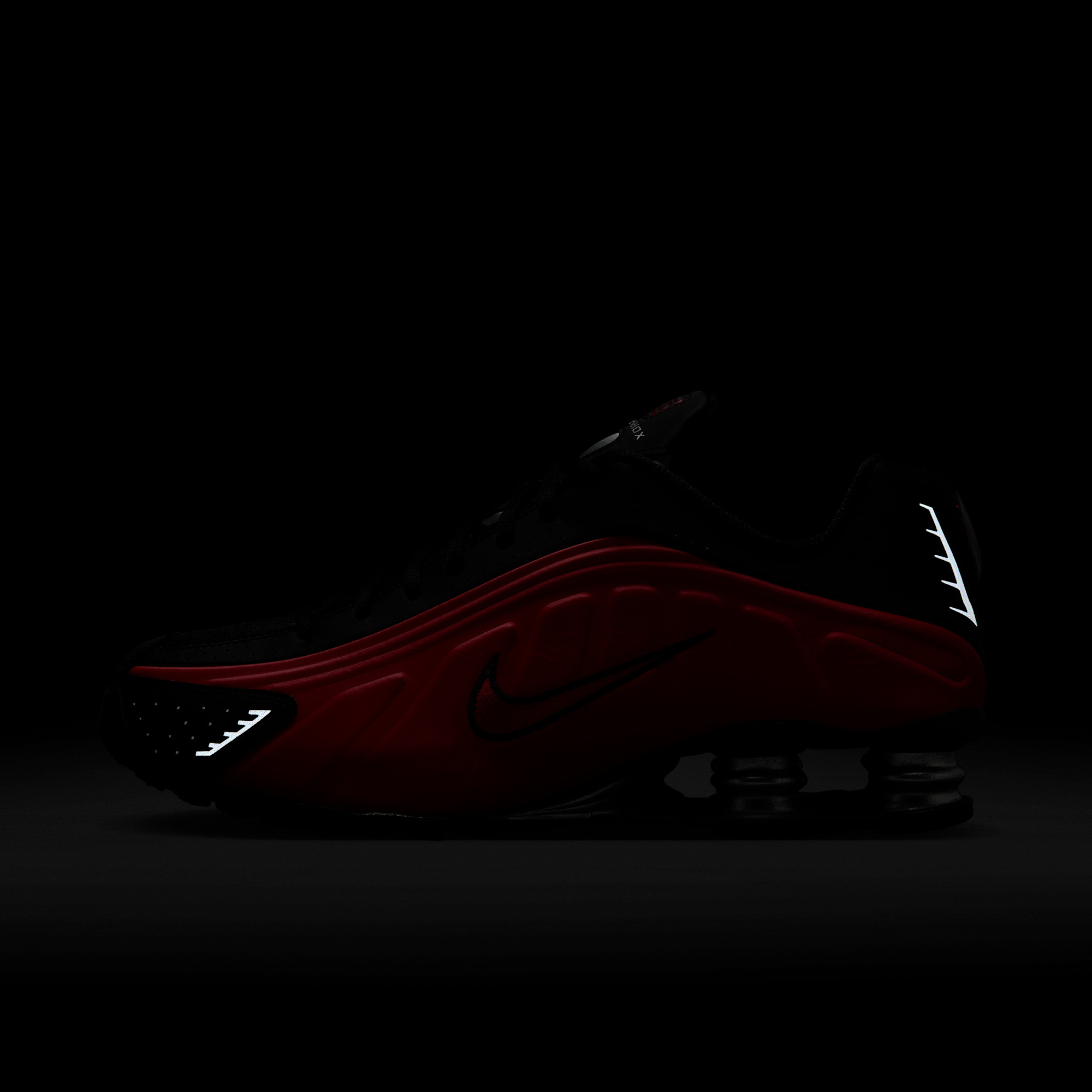 The Nike Shox R4 is a revamped version of the early 2000s classic, replicating the original with futuristic design lines and high-performance cushioning. Nike Shox columns in the heel distribute weight to maximize comfort and provide a striking look on the street.