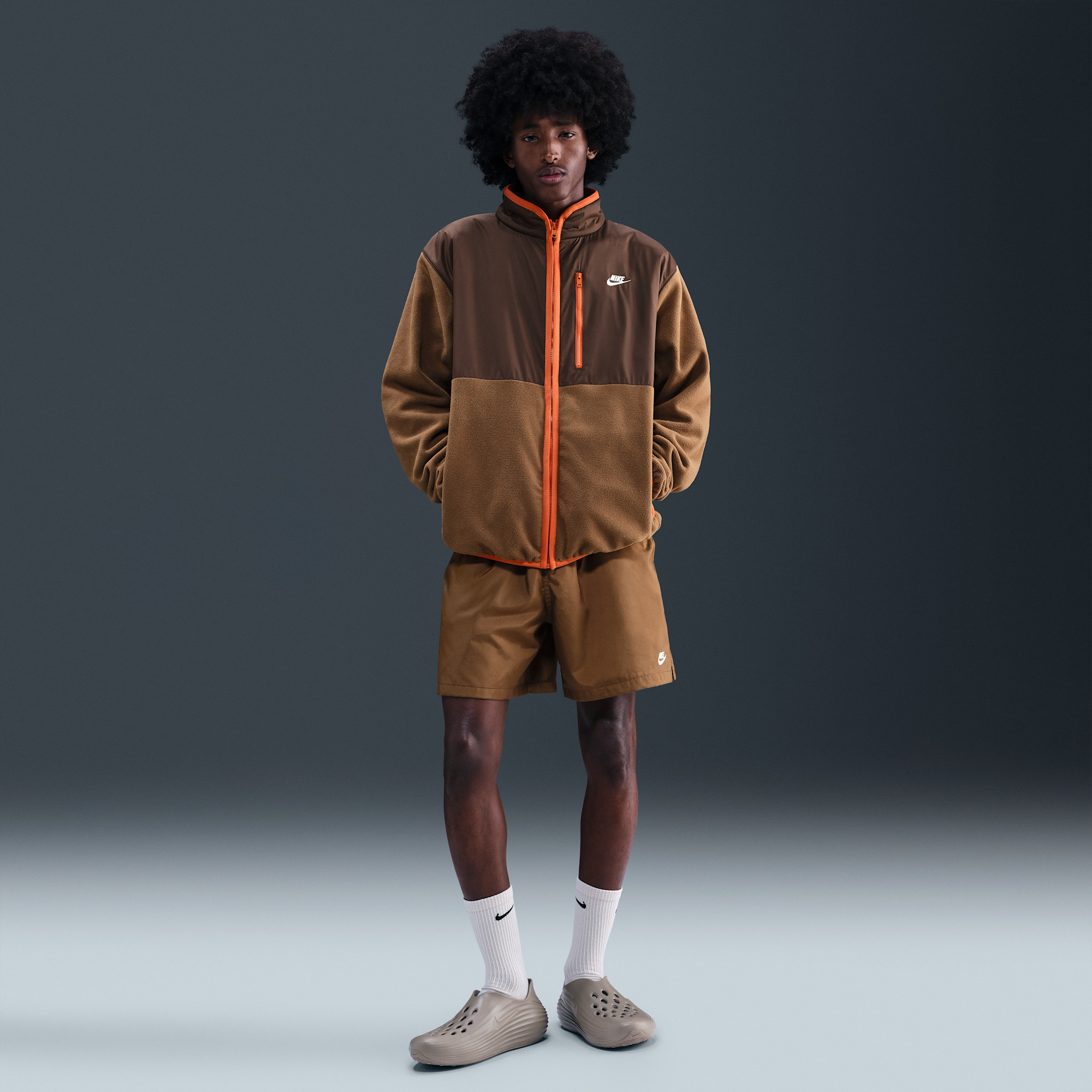 Experience superior warmth and comfort with the Nike Sportswear Club Winterized Full-Zip Men's Jacket. This essential cold-weather piece masterfully blends the plush feel of a classic fleece jacket with advanced Therma-FIT technology, ensuring optimal insulation against chilly temperatures. Designed for practical performance, it features strategically placed woven, water-repellent overlays that offer enhanced protection from light rain and moisture, keeping you dry and comfortable. The full-zip design allows for easy layering and adjustable ventilation, making it a versatile addition to your winter wardrobe. Whether you're heading out for a casual stroll or simply need an extra layer of warmth, this jacket provides reliable protection and a stylish look.