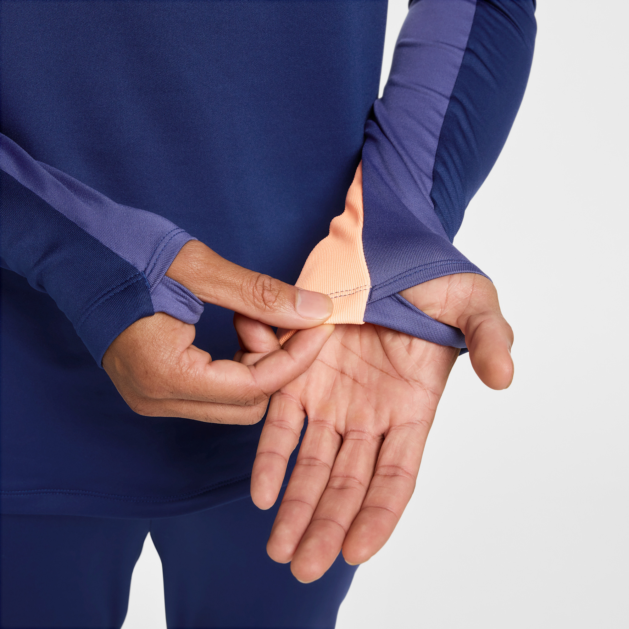 The Nike Strike Drill Top is engineered with specific design details tailored for aspiring football stars. This top features a convenient 1/4-zip design, allowing for easy removal once you're warmed up and prepared to step onto the pitch. Crafted with a slim, streamlined fit, it ensures a comfortable and non-restrictive feel during intense training sessions. The advanced sweat-wicking fabric actively pulls moisture away from your skin, helping you stay cool, dry, and entirely focused on improving your game. This professional-grade top is designed to support peak performance and skill development.