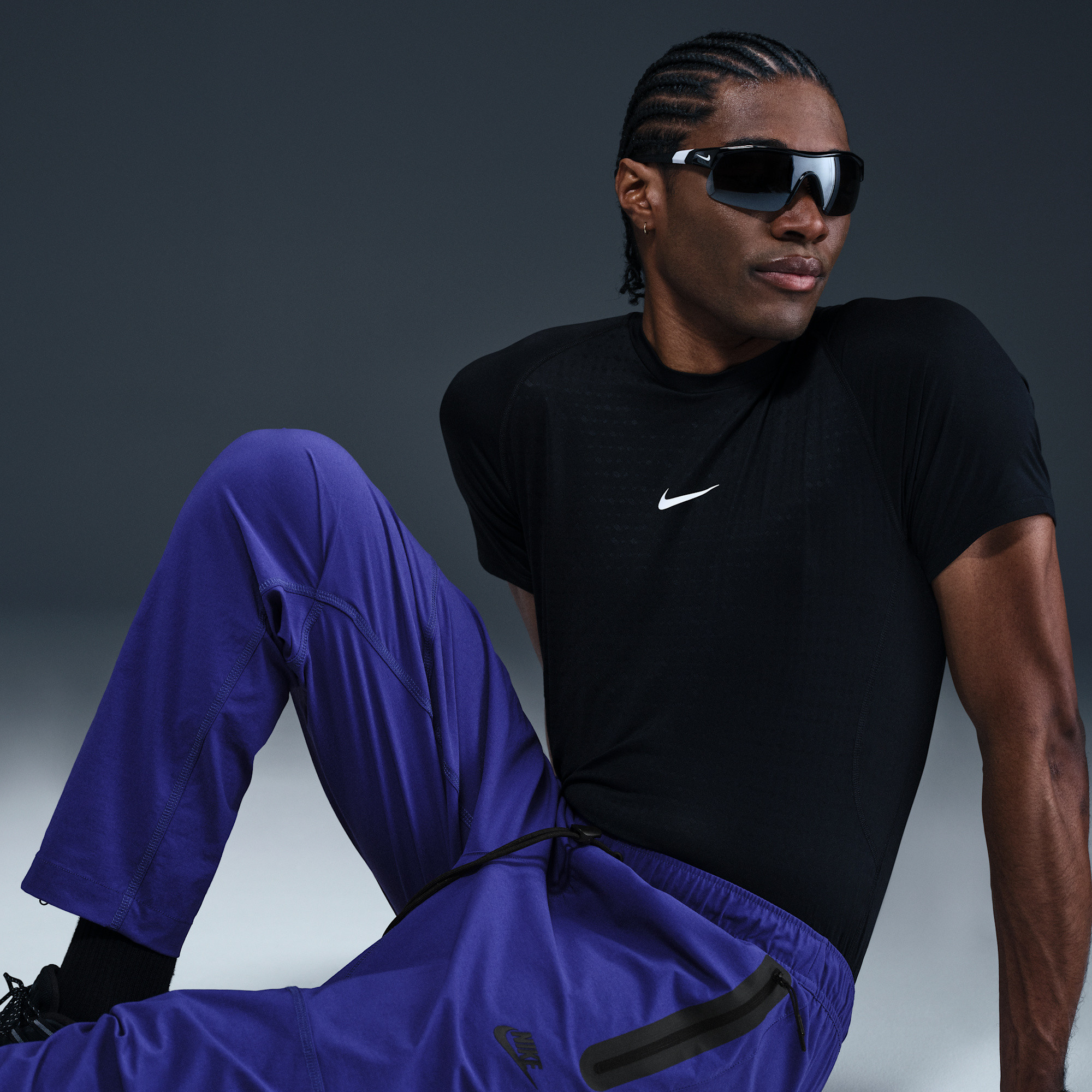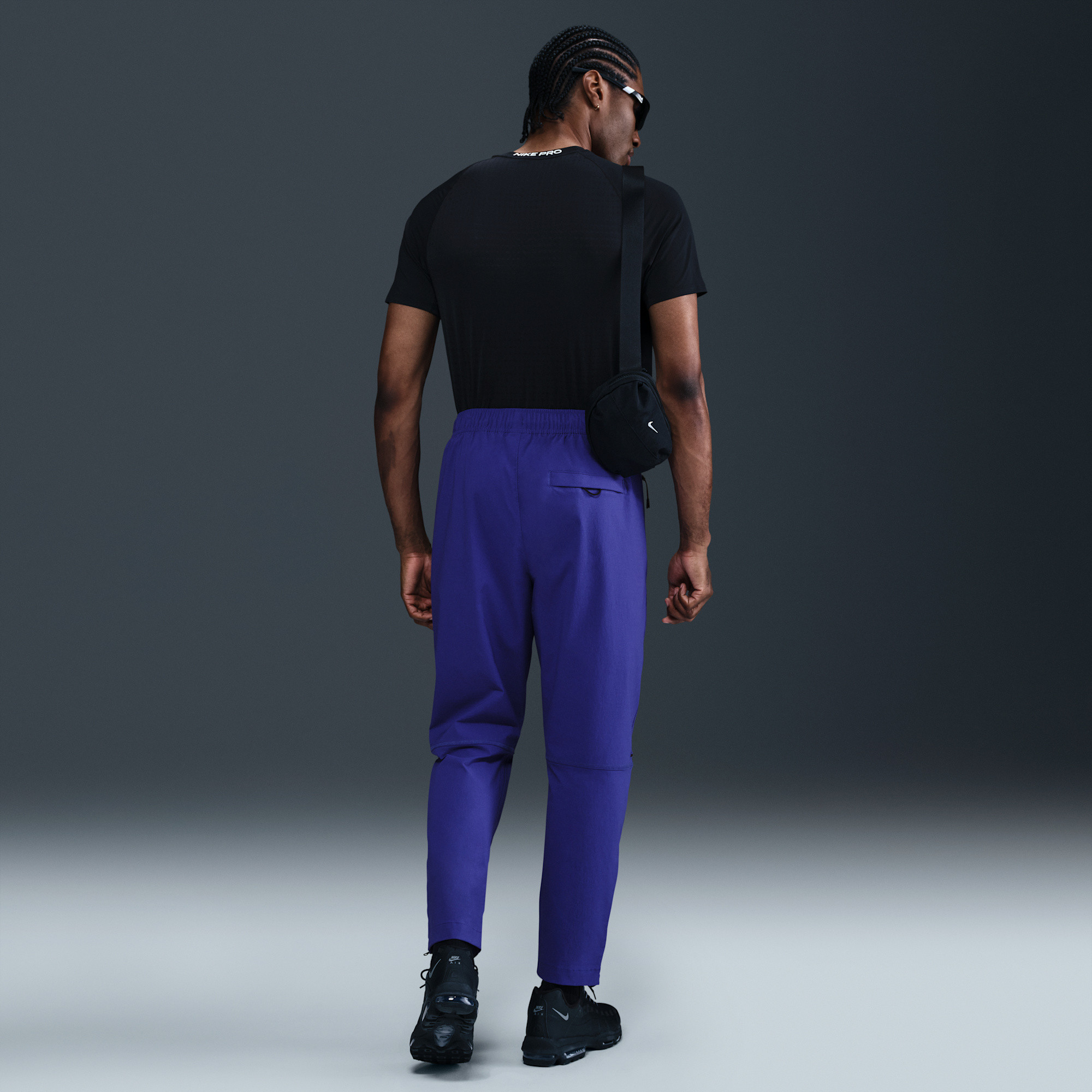 Experience the sleek, modern aesthetic of the Nike Tech Web Pants. Crafted from an elastic, sweat-wicking fabric, these tapered trousers offer both comfort and performance. Designed with a slightly wider fit through the seat and thighs, they gracefully narrow towards the zippered ankle cuffs, ensuring a streamlined silhouette. Signature Nike Tech details complete the professional and athletic look, making them ideal for both active pursuits and casual wear.