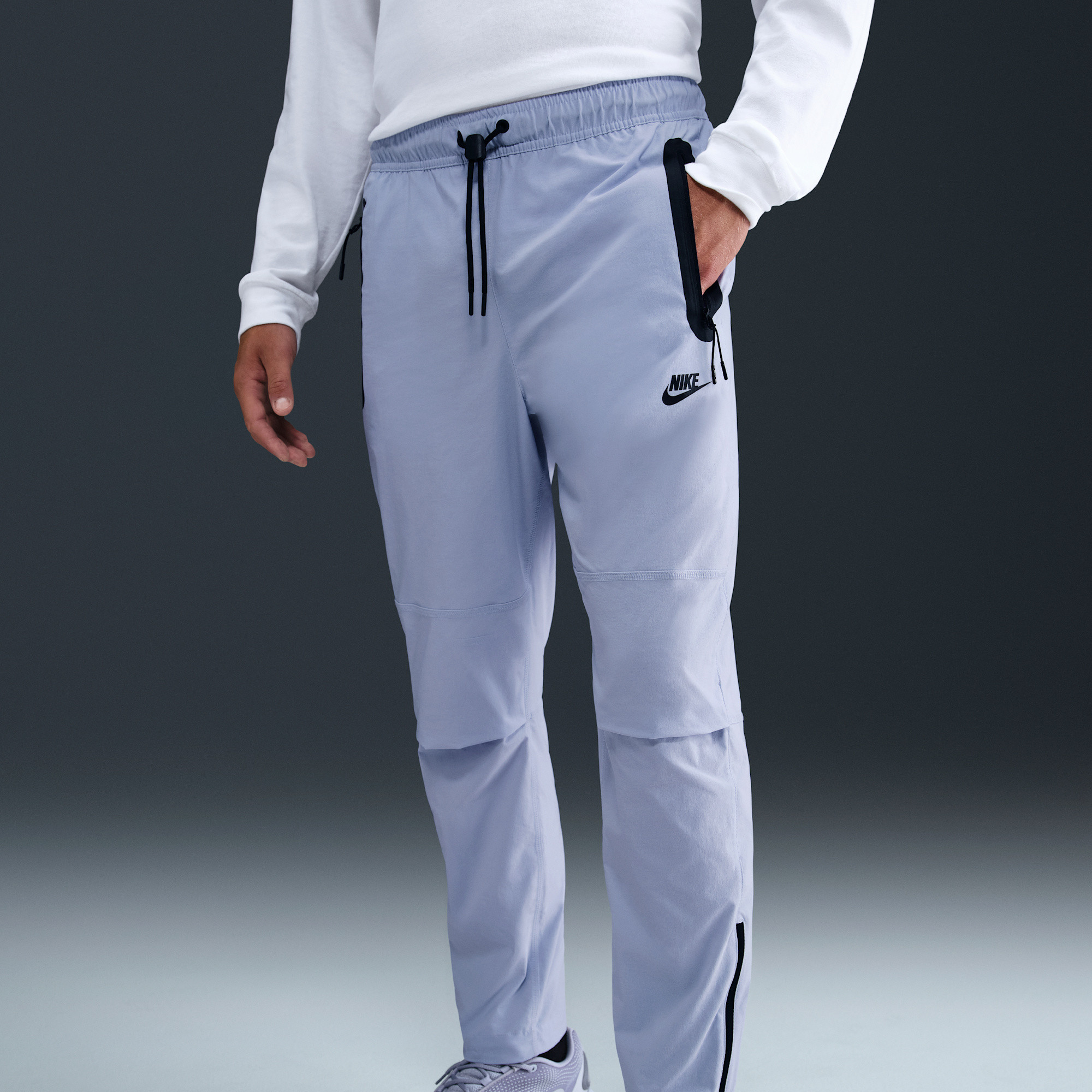 Experience the perfect blend of style and performance with the Nike Tech Woven Trousers. Crafted from an innovative, elastic, and sweat-wicking fabric, these trousers are designed to keep you comfortable and dry throughout your day. They feature the signature clean and minimalist Nike Tech aesthetic, making them a versatile addition to any wardrobe. The design offers a modern, tapered fit, providing a slightly wider cut around the seat and thighs for enhanced mobility, gradually narrowing towards the ankle. A convenient zipper at the ankle allows for easy on and off, while classic Tech details subtly elevate the overall design. Ideal for both active pursuits and casual wear, these trousers combine functionality with contemporary urban style.