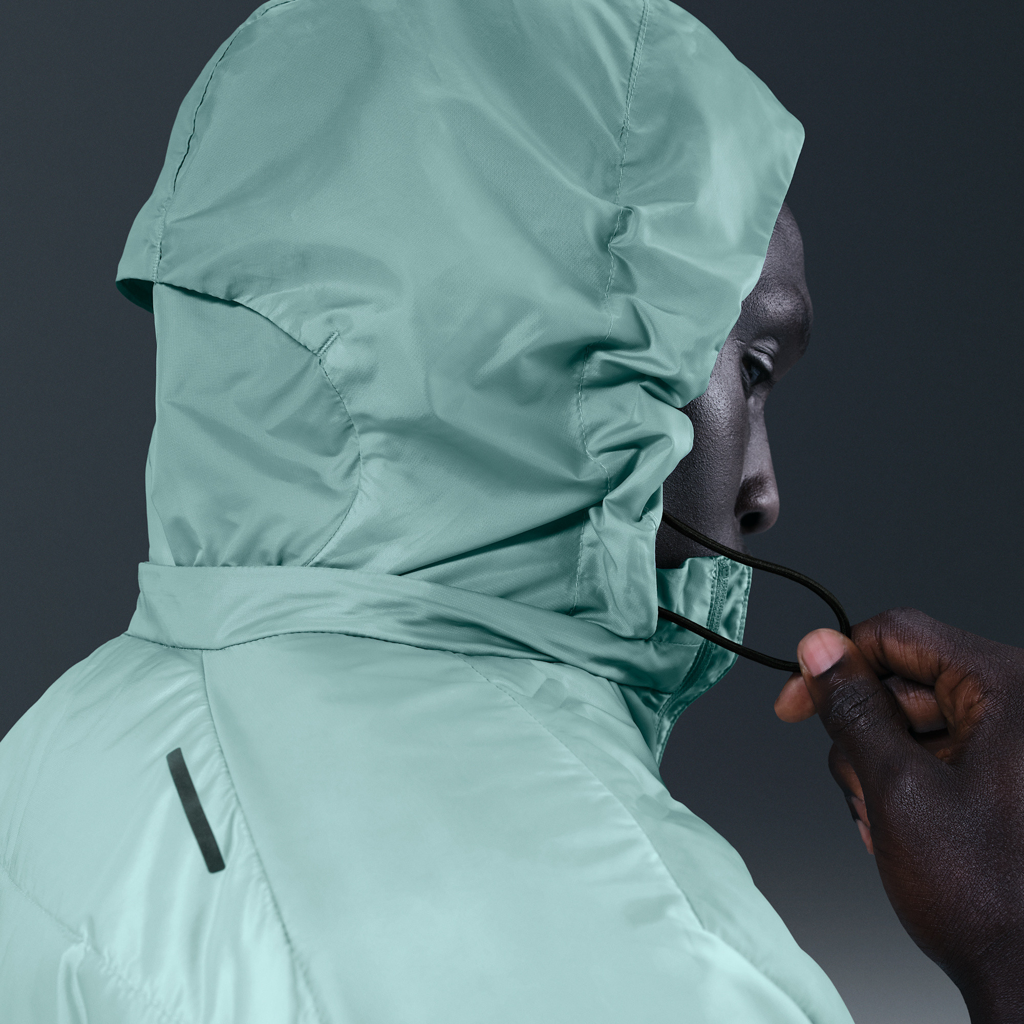 Don't let cold weather stop your run. Our designers crafted this insulated, sweat-wicking running jacket to keep you going. Featuring Nike Therma-FIT ADV technology, it combines heat-regulating fabric with advanced construction and features designed to keep you warm in chilly conditions. The material also boasts a durable, water-repellent coating, ensuring you stay dry. A packable hood offers versatile options, ready whether you need it for quick sprints or your long weekend runs. This jacket is engineered for performance and comfort, allowing you to focus on your stride, not the elements.