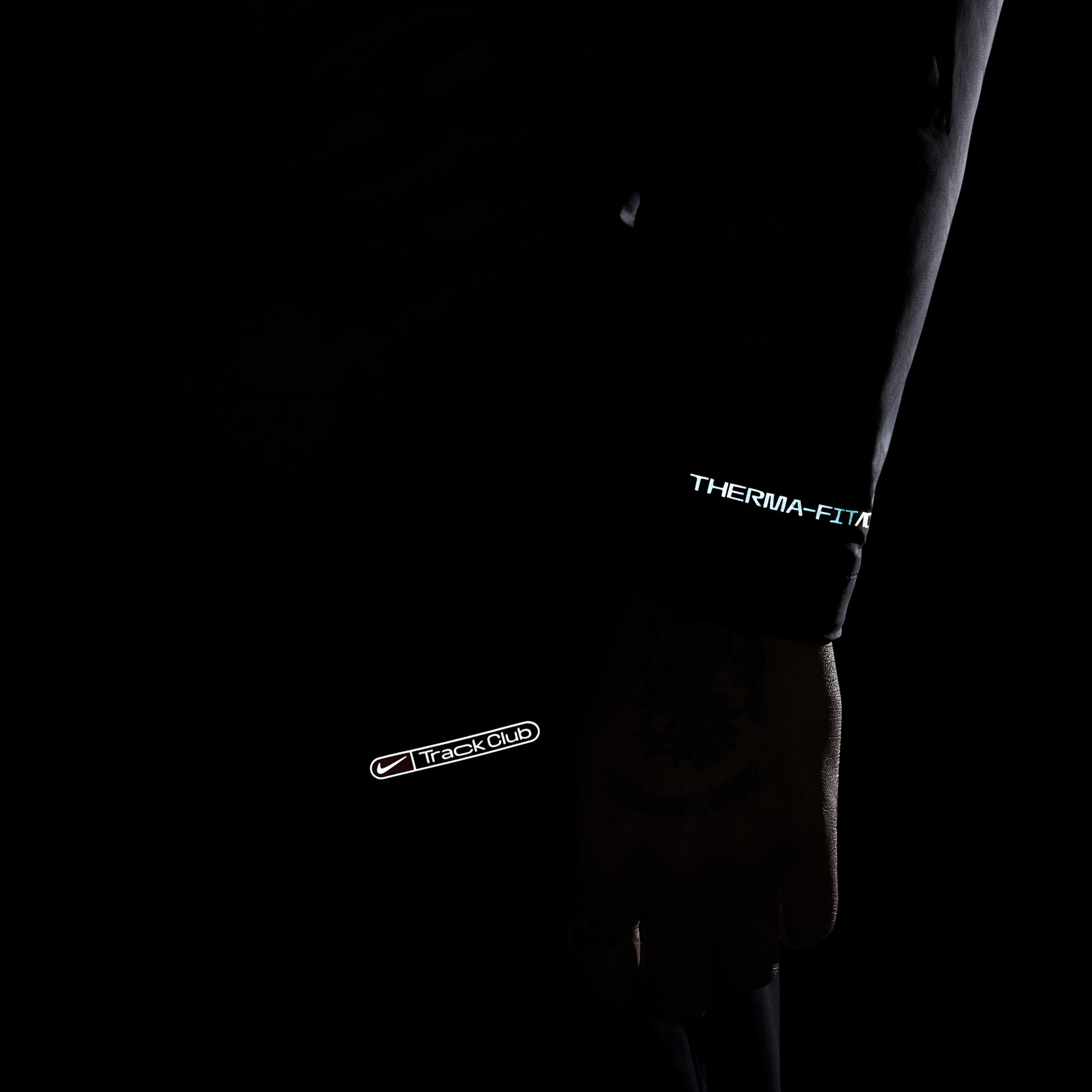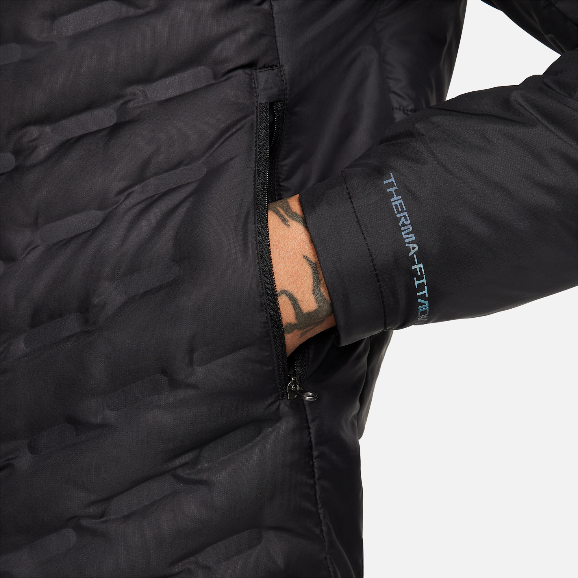 Don't let cold weather hinder your running performance. Our designers engineered this insulated, sweat-wicking running jacket to keep you comfortable. Featuring Nike Therma-FIT ADV technology, this jacket integrates heat-regulating fabric with an advanced construction, providing optimal warmth and comfort in chilly conditions. The durable, water-repellent finish offers protection against light rain and moisture, ensuring you stay dry. A convenient stowable hood provides versatile coverage, perfect for adapting to varying weather during your short sprints or extended weekend runs.
