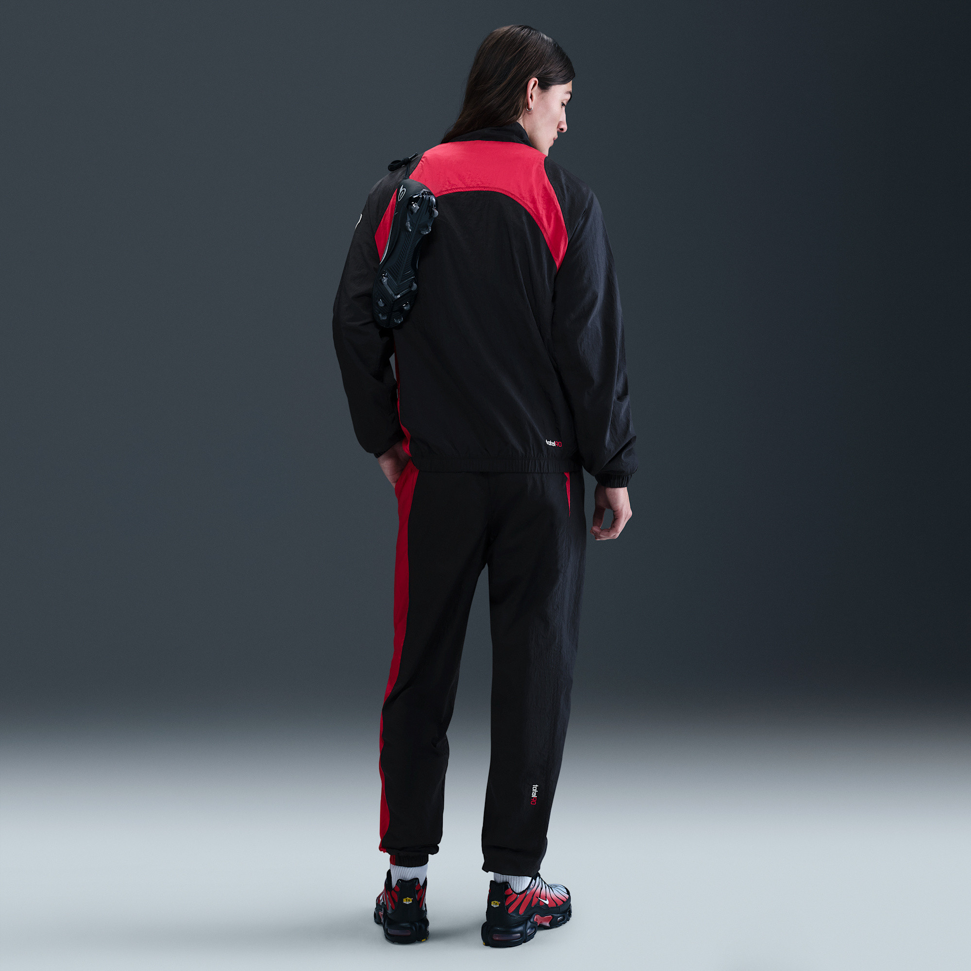 Embrace the iconic aesthetic of early 2000s Nike football jerseys with these Total 90 training pants. Crafted from durable nylon, they blend nostalgic vibes with modern, functional style. The distinctive curved, asymmetrical design lines are not just a nod to heritage but also enhance the overall dynamic look. Featuring a water-repellent shell and a comfortable mesh lining, these pants are engineered to keep you dry and comfortable. Perfect for both the stadium stands and everyday street wear, they offer a versatile and professional addition to any wardrobe.