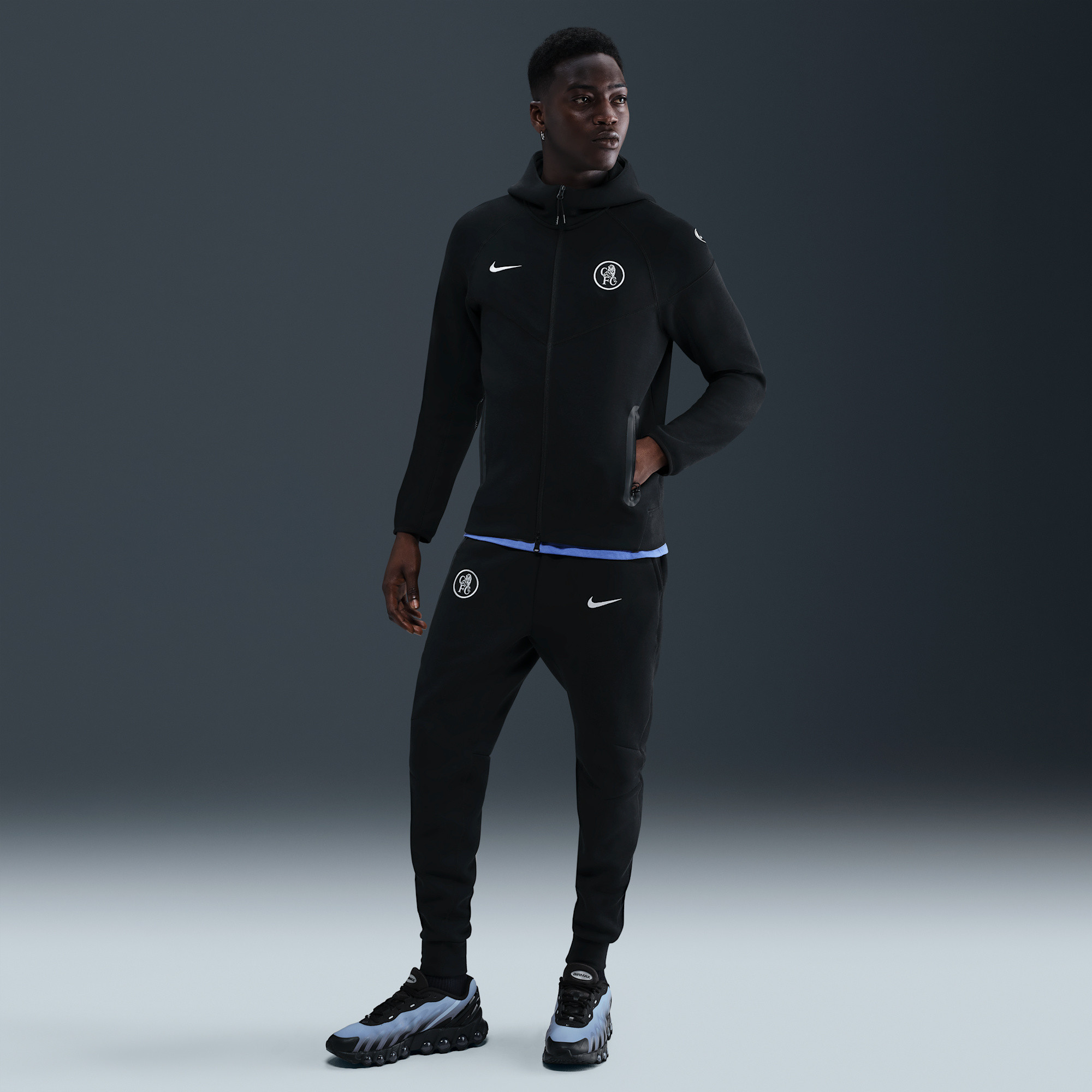 This Windrunner jacket reimagines an iconic design, crafted from our premium, lightweight Tech Fleece. Smooth both inside and out, it delivers substantial warmth without adding bulk, ensuring comfort and freedom of movement. Featuring the crest and colors of FC Chelsea, this jacket allows you to proudly display your team allegiance, even when the weather turns cool. It's the perfect blend of athletic style and practical warmth for dedicated fans.