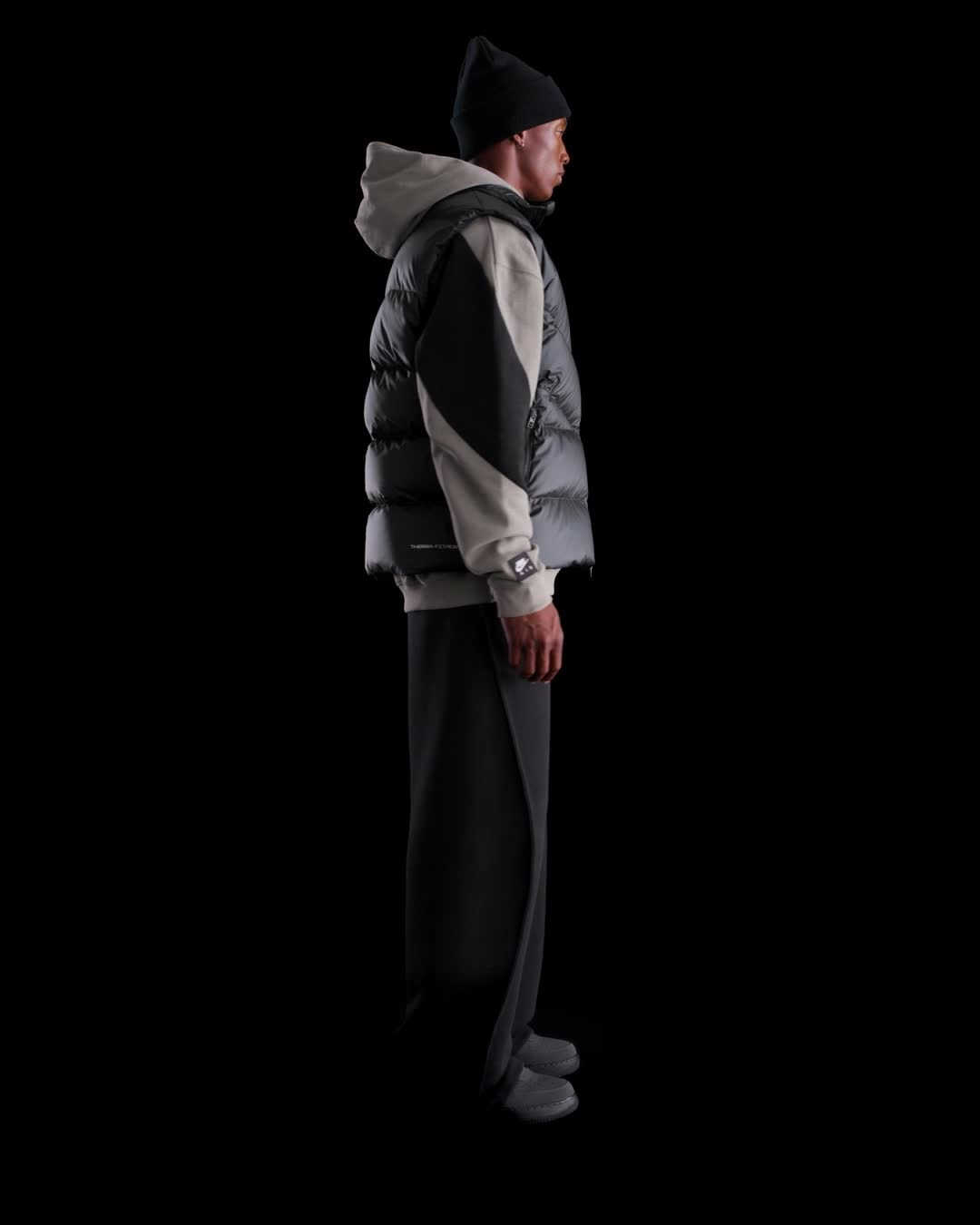 Embrace the iconic Windrunner style and stay prepared for changing temperatures with this versatile down vest. Crafted from a water-repellent material, it offers reliable protection against light rain and moisture, ensuring you remain comfortable and dry. Its loose fit is designed for easy layering over your favorite outfits, providing both comfort and unrestricted movement.