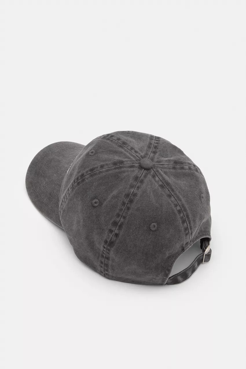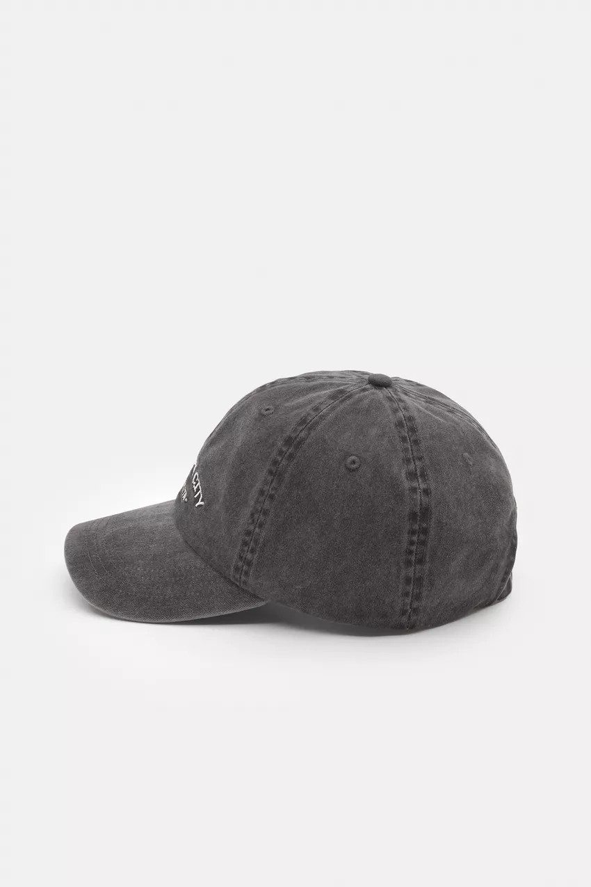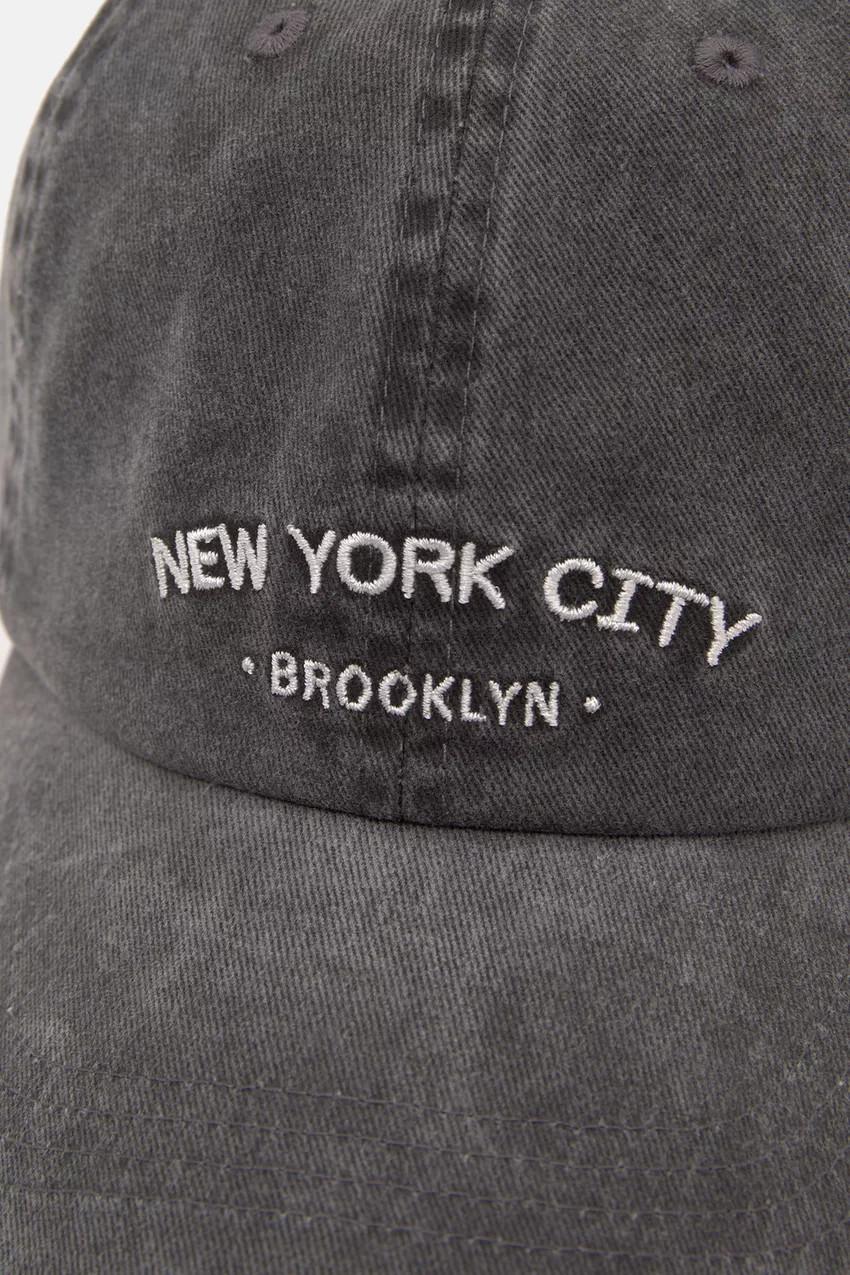 Baseball cap with contrasting graphic design and curved visor, made of 100% cotton fabric.