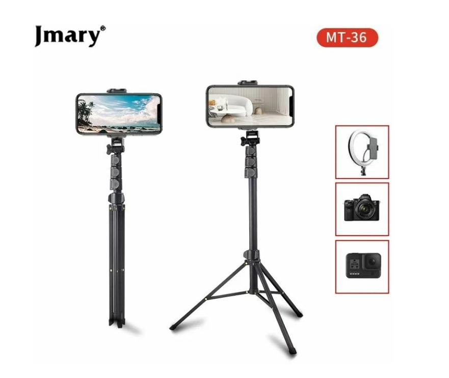 Tripod type: outdoor, tripod construction, scope of application: for cameras, maximum shooting height: 169 cm, head type: ball, options and kit: Tripod. A clip for installing a smartphone. The head. Instruction manual.