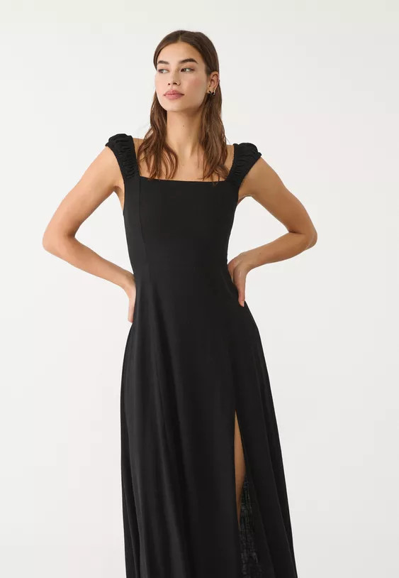 Stradivarius Flowing midi dress with wrap back and linen detail