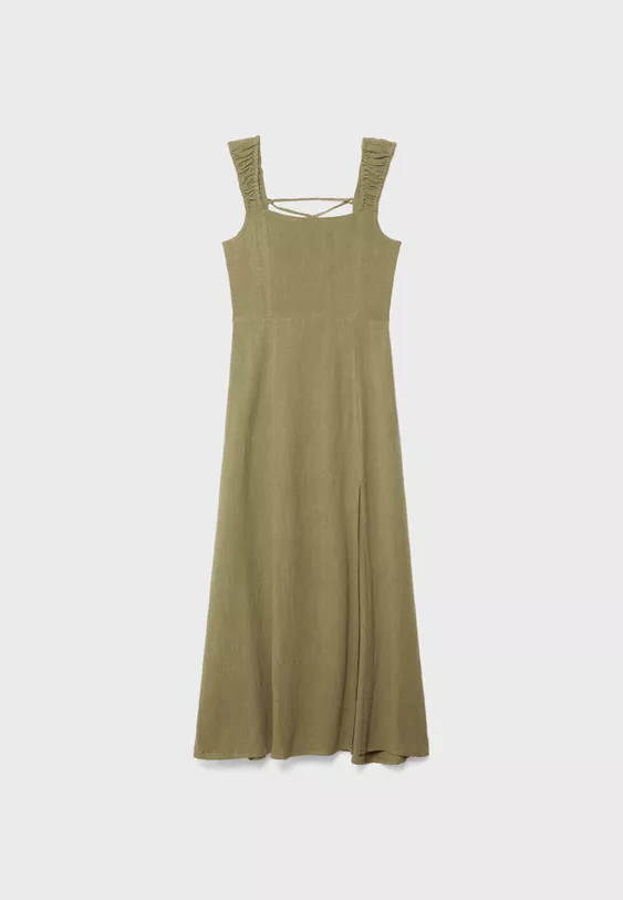 Stradivarius Flowing midi dress with wrap back and linen detail