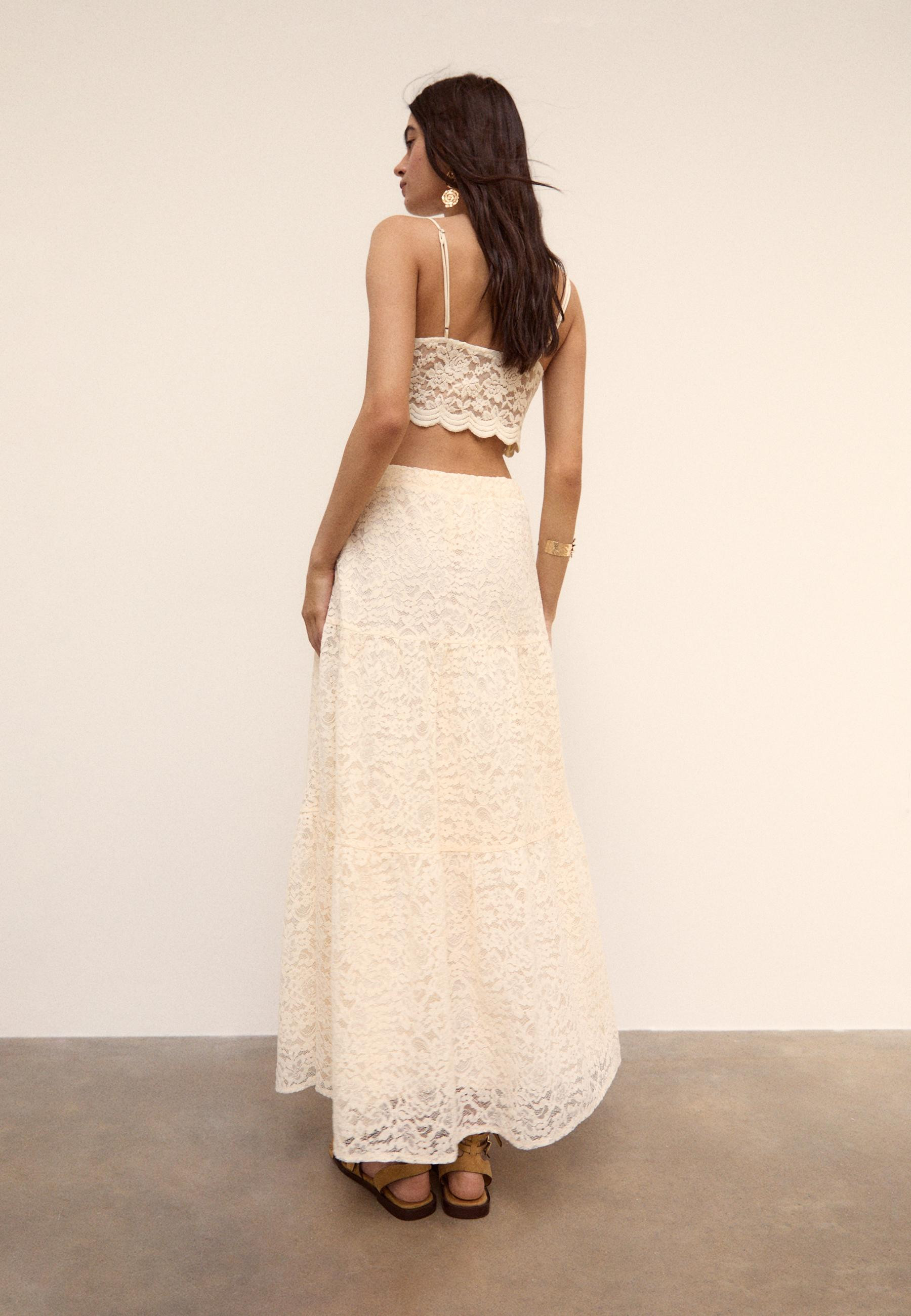 Midi skirt with a flowing cut, a midi-length hem, and an elastic waistband. Tonal lining.