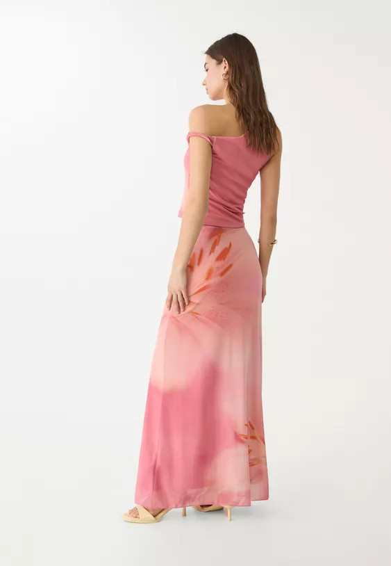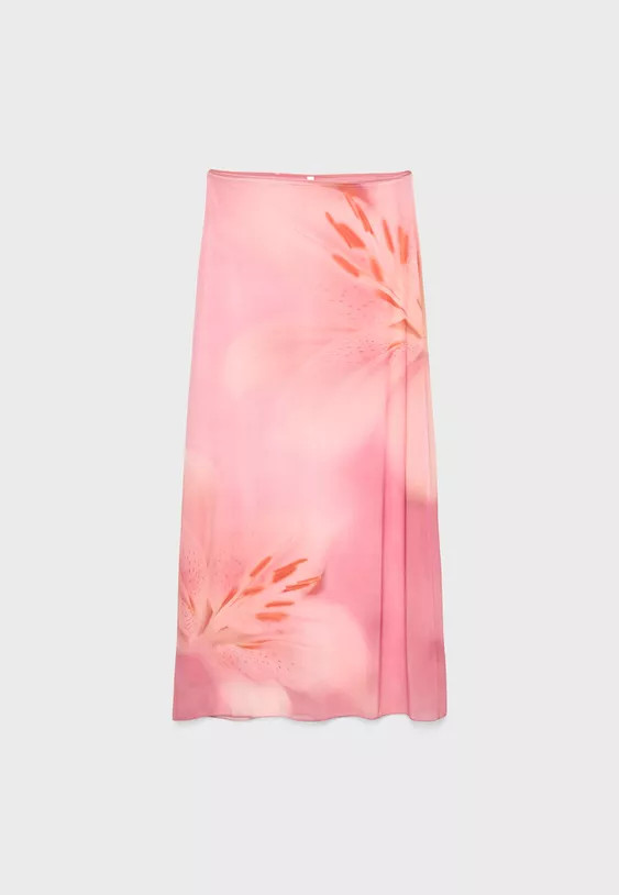 Midi skirt made of tulle fabric with inner lining, mid-rise waistband and stretch waistband. Available in various colors.