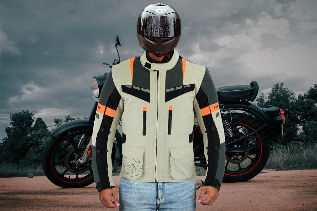 WINDPROOF , WATERPROOF AND BREATHABLE, 600D CORDURA CONSTRUCTION YKK ZIPPERS REMOVABLE THERMAL LINING. 3M REFLECTIVE PRINTING. REMOVABLE ARMOURS AT BACK , ELBOW & SHOULDER 2 FRONT POCKETS , 1 BACK POCKET , 1 INNER POCKET HEAVY DUTY ZIPPER AT BOTTOM TO ATTACH TROUSERS AIR VENT ZIPPERS AT FRONT, BACK AND FOREARM ALL SEEMS ARE HEAT MOULDED SEALED TO MAKE IT WATERPROOF COMFORTABLE PADDED COLLAR VENT ZIPPERS AT FRONT, BACK AND FOREARM According to customer feedback, sizes run Generous on this model