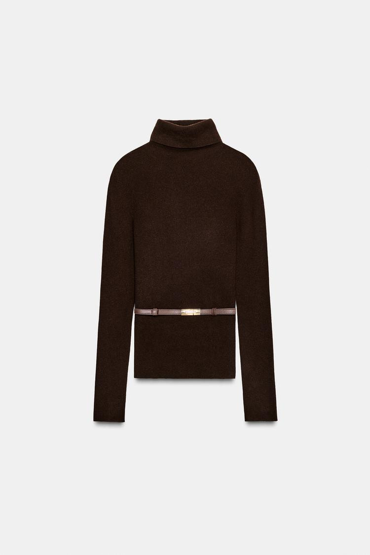 ZARA 100% WOOL HIGH NECK JUMPER WITH BELT