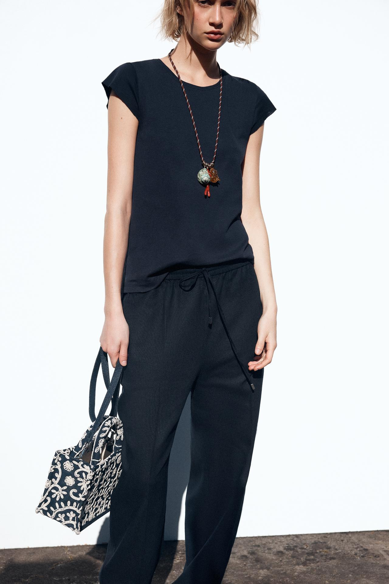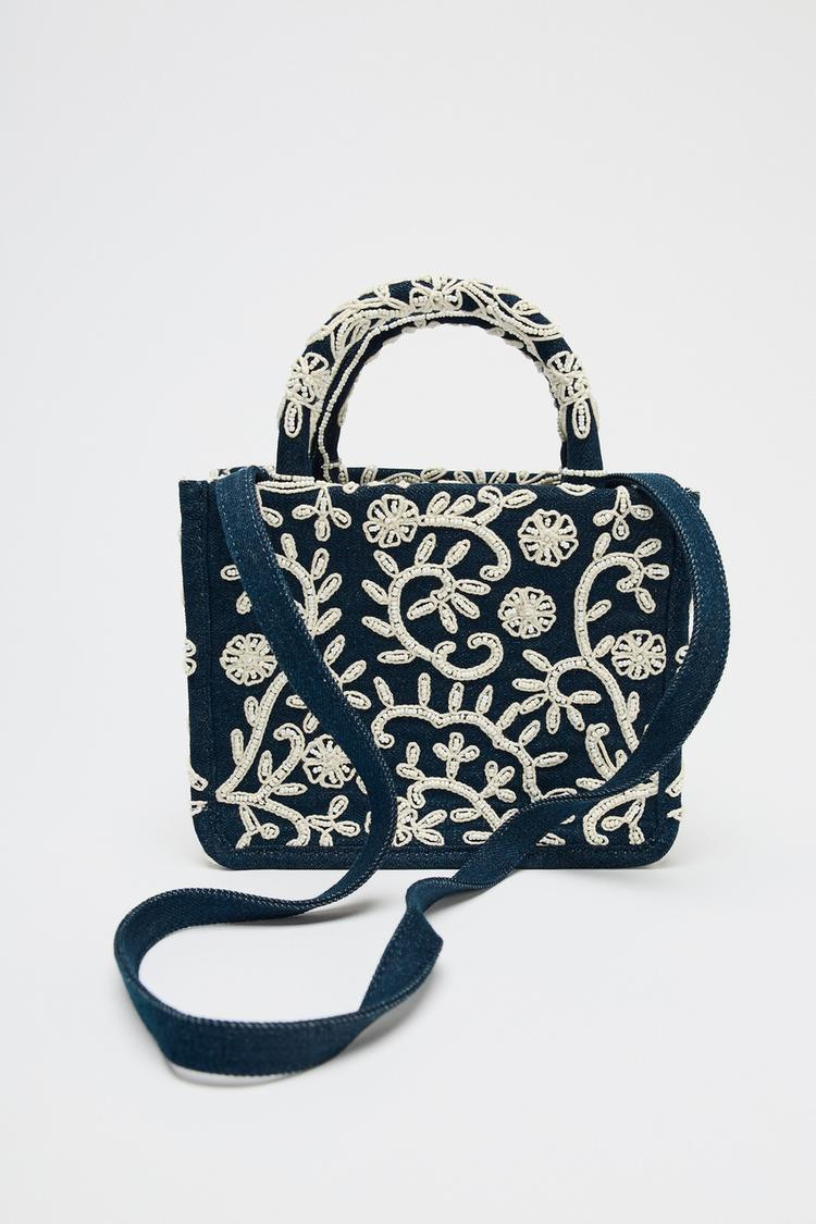 Zara EMBROIDERED DETAIL DENIM STRUCTURED CITY BAG