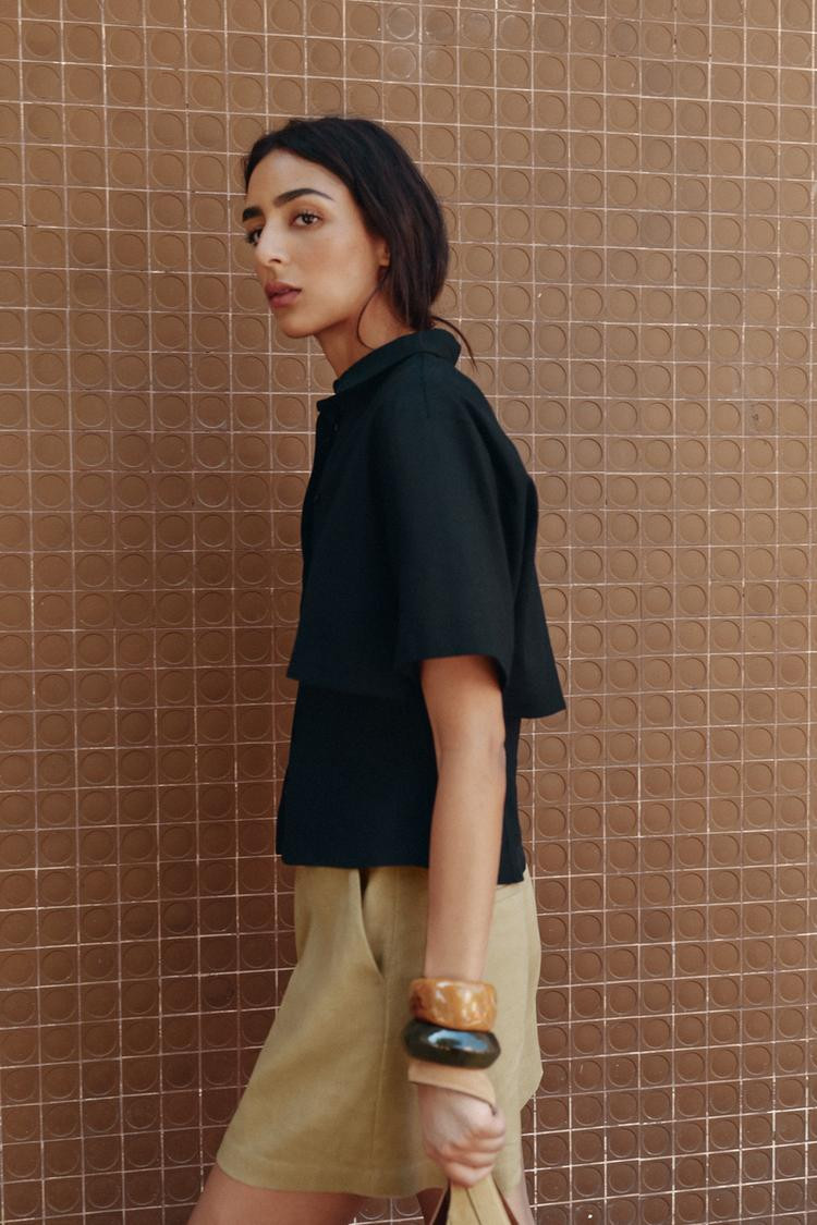 Zara FITTED DOUBLE-LAYER LINEN BLEND SHIRT