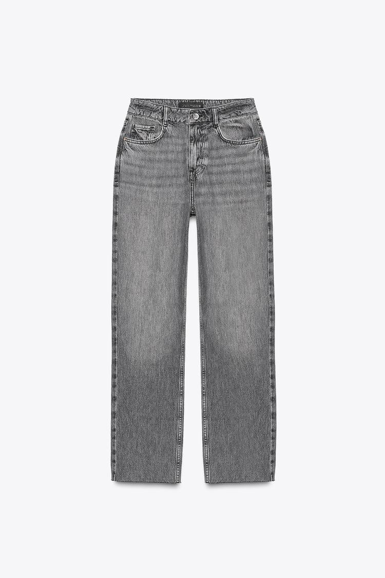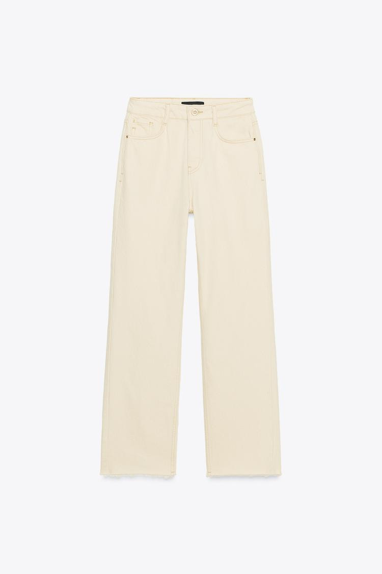 High-waist ankle jeans with five pockets. Straight leg with seamless finish. Front zip and button fastening.