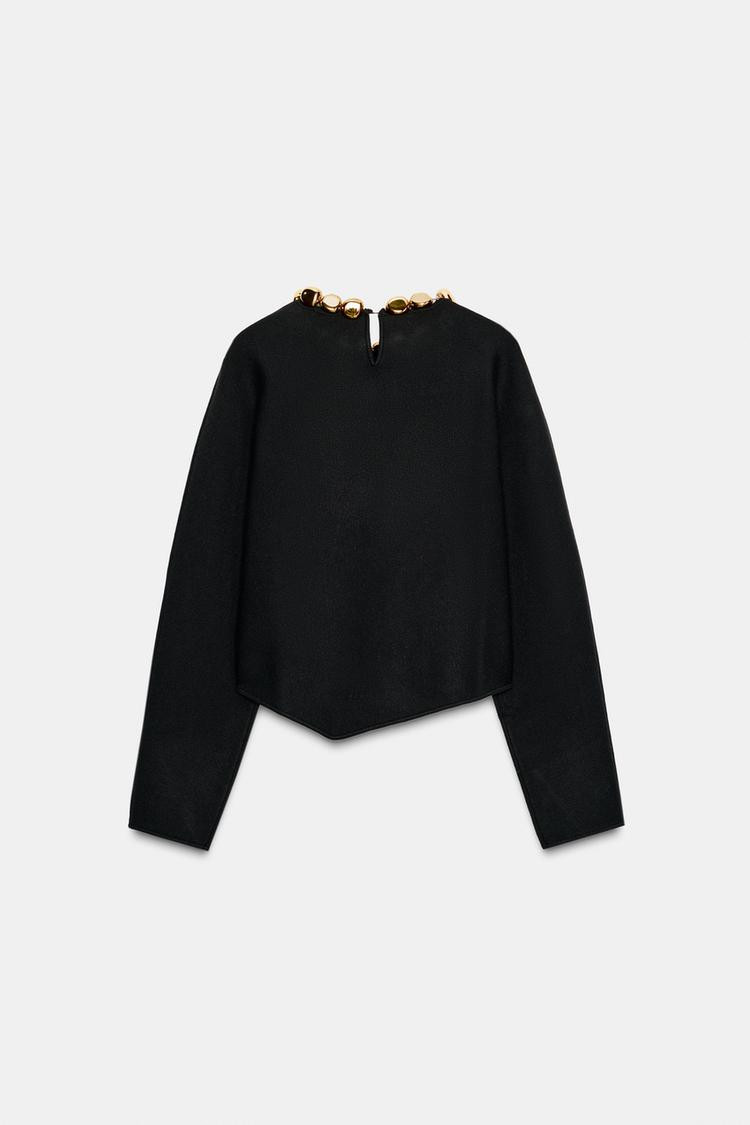 ZARA KNIT JUMPER WITH BEADED NECKLINE